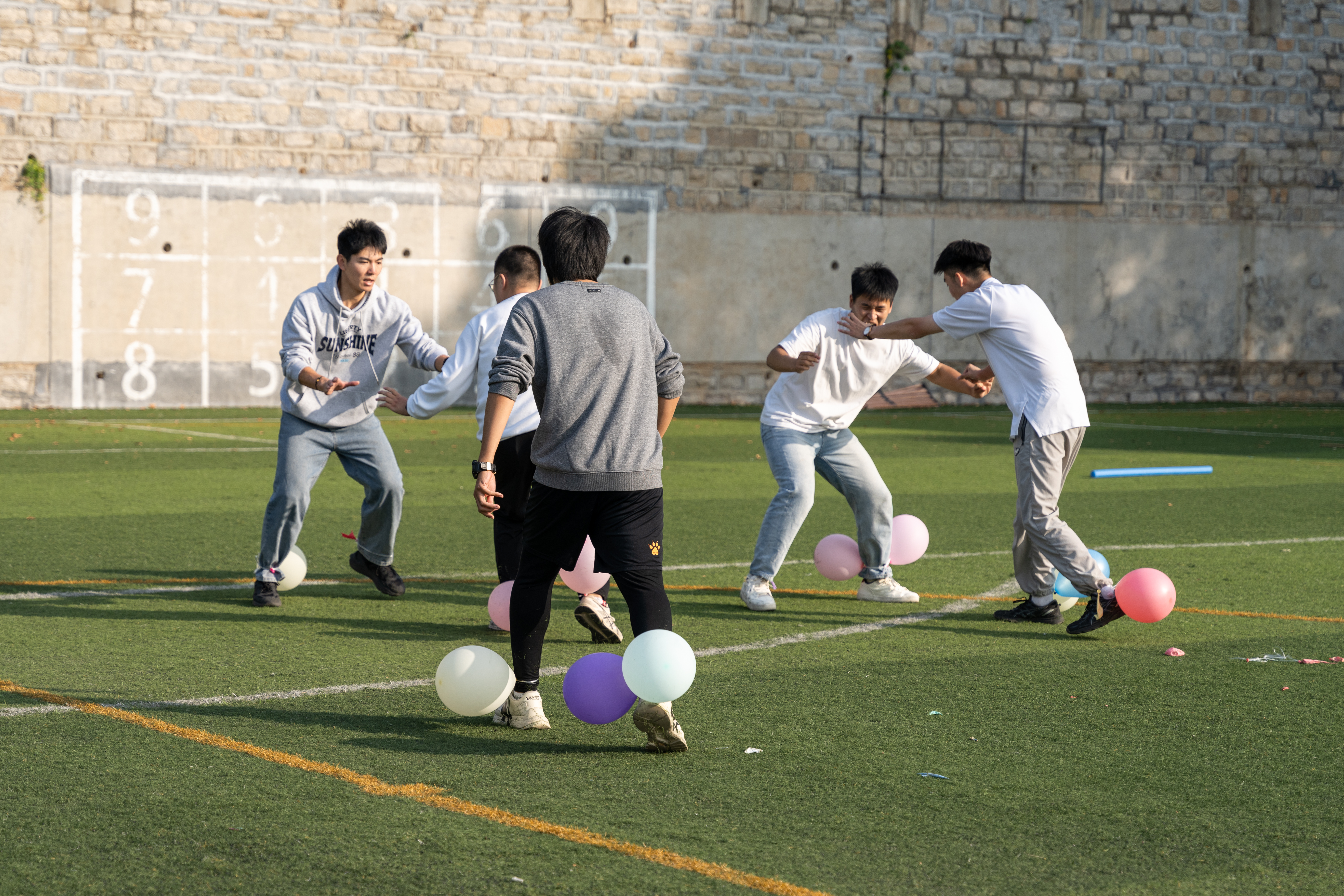 本次素质拓展活动融竞技性与娱乐性于一体,包括精心设置的团队合作项目和精彩的文艺表演。在主持人的带领下,参与同学以团队形式开展了“踩气球”“两人三足进阶版”“蒙眼踢球”和等富含趣味性和团队合作的拓展游戏。同学们按照比赛规则在主持人的引导下积极参与。活动过程中,同学们们齐心协力、密切配合,现场氛围十分活跃。在此起彼伏的加油声和欢声笑语中,本次素质拓展活动落下帷幕。
