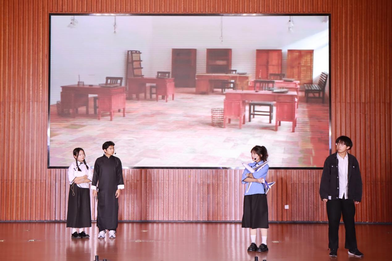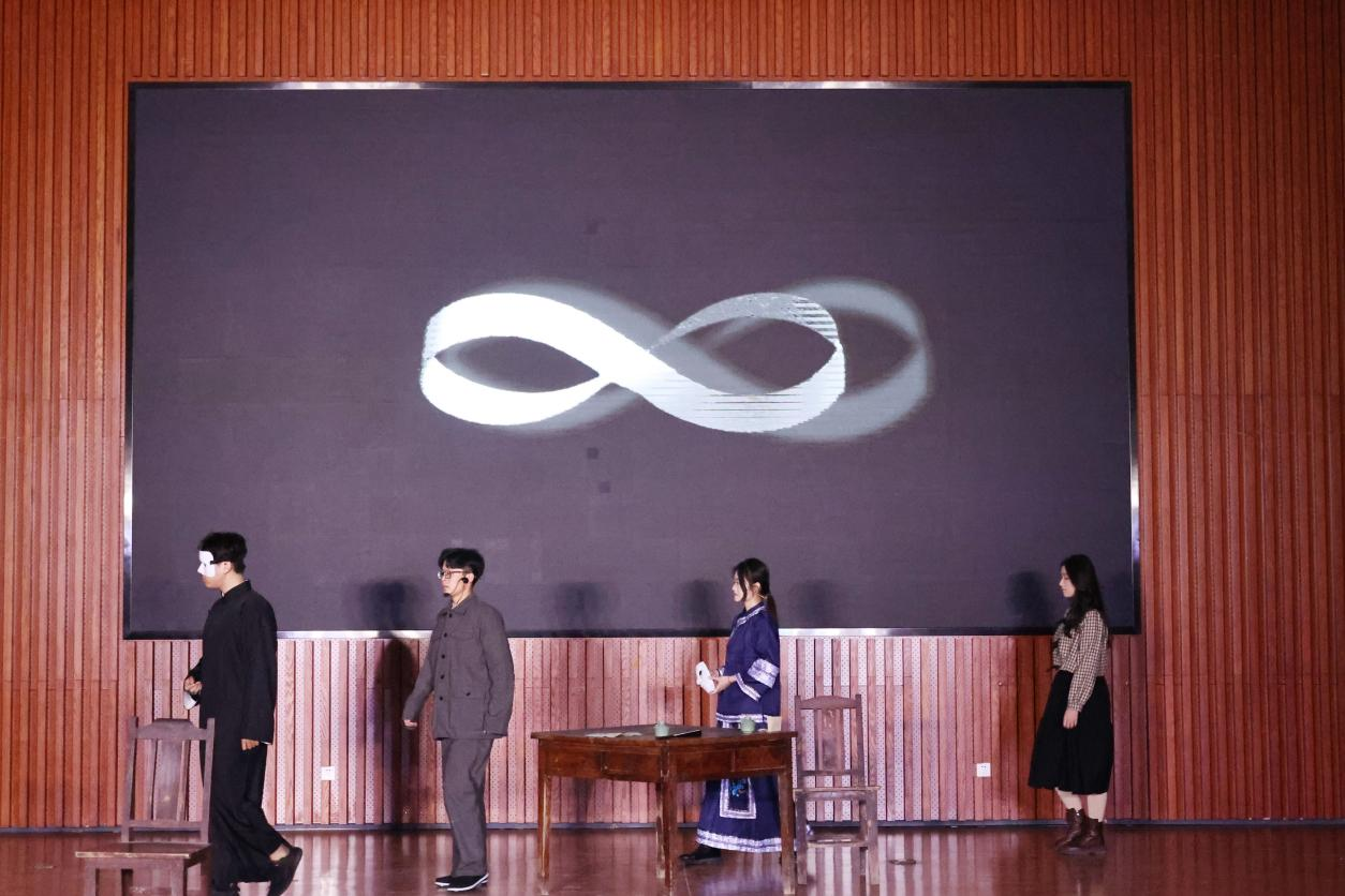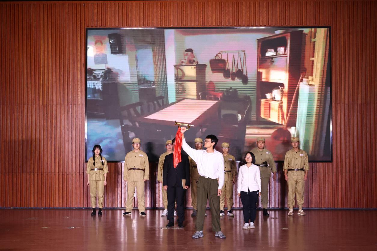 开幕话剧《冲锋号》中的老兵赵银桥带领同学们走进那个战火纷飞的年代,一把冲锋号彰显出革命先烈对党对国的赤胆忠心,银桥的记忆虽已远去,但他炽热如火的报国之心仍激励着大家勇毅前行。雁潮北归,新月升起,话剧《月落玉长河》为我们带来跨越百年的故事传奇,时代的浪潮与个人的选择,在这里次序上演,三代玉器匠人以身作诠释了对人生价值的超脱和对工匠精神的求索。话剧《无可替换的时代》以周爱国意外穿越的故事展开,他响应时代的号召,将自身命运与国家前途紧密相连,在令人啼笑皆非的命运交叠中收获了爱与成长。话剧《送信》以易铮为红军送信为主线,一封丢失的遗书,一床剪开的棉被,点点滴滴流露出军民鱼水一家亲的真情,同学们以不俗的实力和精彩的表演赢得大家掌声阵阵。话剧《七人》将观众带入陪审法庭中,是铁证如山还是另有隐情,七名陪审员以缜密的推理和激烈的讨论引发了观众对谎言与偏见的深思,人性的温度与生命的价值被展现得淋漓尽致。