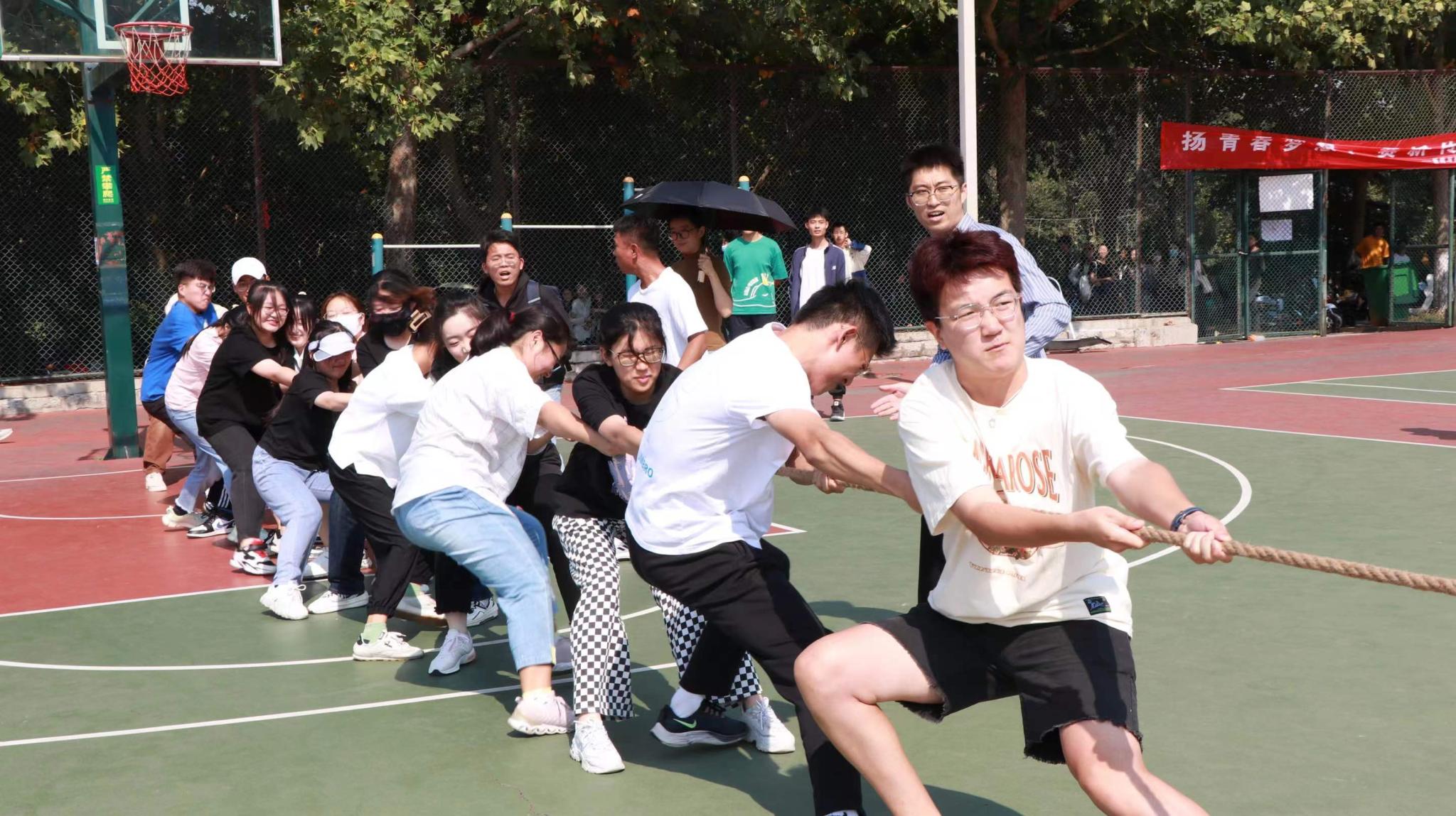 9月29日中午,学院于长清湖校区高地篮球场举行“扬青春梦想、赛新传风采”本硕拔河联赛。本次比赛共有本科生队伍18支,研究生队伍5支。赛程共分为四轮,第一轮比赛实行一局定胜负制,其他场次实行三局两胜制。学院全体辅导员和同学们到场为参赛同学加油鼓劲。