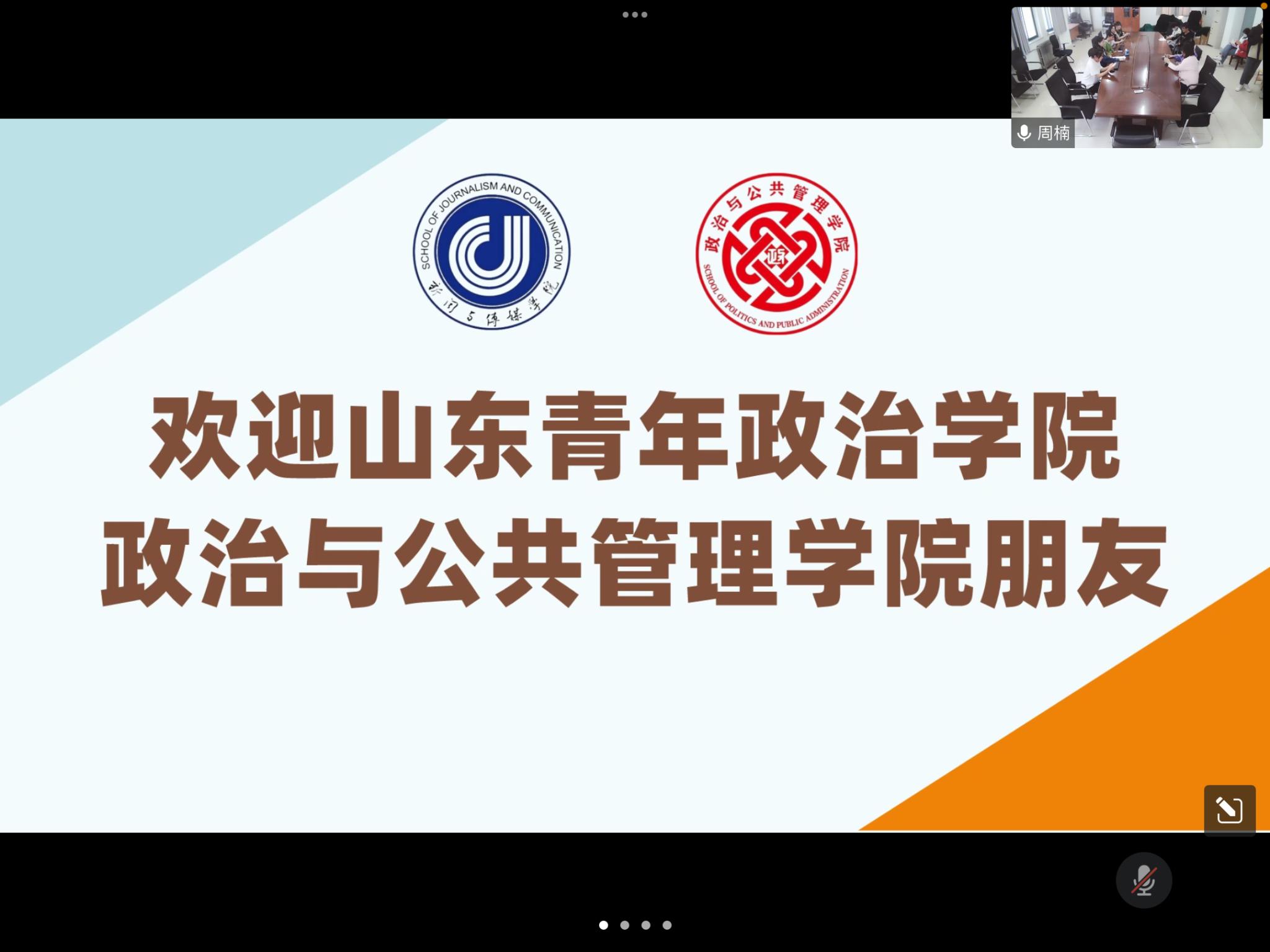 5月19日下午,学院与山东青年政治学院政治与公共管理学院融媒体中心在线上开展新媒体工作交流会,山东青年政治学院教师马千惠,我院教师周楠、赵薛娇以及两院工作室成员参加交流会。