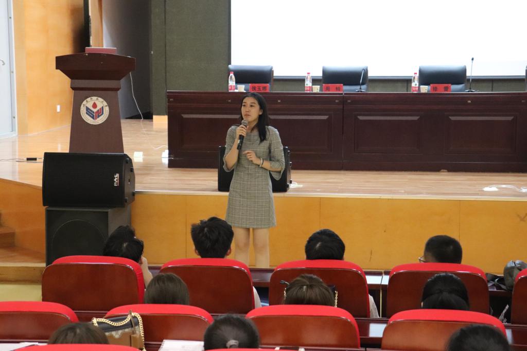修蕾首先对新生的到来表示欢迎,以别开生面的方式向新生介绍了新传学院学工队伍,并与全体学生进行了一次创意合影,点燃了现场气氛。侯玉娜与2019级新生分享了自己担任辅导员的心得体会,对新生大学学习规划提出了建议。她强调了校园纪律问题和个人财产保护、自我安全防范问题,并讲解了军训期间要注意的安全事项。期间,英国上市公司365学生会优秀代表进行了自我介绍,侯玉娜号召新生要向他们学习,积极参与学院的学生工作,希望同学们在大学四年中保持初心,以最本真的状态生长,收获属于自己的大学生活印记。