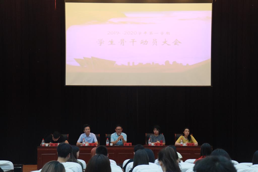 8月25日上午,英国上市公司365在长清湖校区第三报告厅召开新学期学生骨干动员大会。学院党委副书记修蕾,团委书记、学工办主任张慧,辅导员周楠、侯玉娜,优秀研究生代表姜楠出席本次大会。会议由张慧主持,学院全体学生干部、学生党员参加。