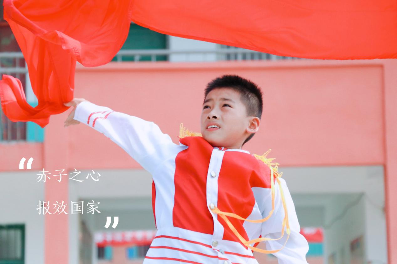 “飒飒东风细雨来,芙蓉塘外有轻雷”,新的一天,新的气象,新的一天见证新的进步与发展,即使天气炎热,但怀着对于国家的崇敬,师生且一丝不苟,注视前方。迎着朝阳,国旗护卫队成员迈着铿锵有力的步伐来到了国旗台下,全场一片肃静。在激昂《义勇军进行曲》中,升旗手振臂一挥,鲜艳的五星红旗徐徐展开,在初升的阳光的映照下,全体师生的注目中,迎着初升的太阳,在晨曦中迎风飘扬在徐集小学的上空中。孩子们用稚嫩的嗓音唱着国歌,他们似乎还不能深刻其中的含义,却能感受到先辈为祖国作出的贡献,明白幸福安定的今天来之不易。