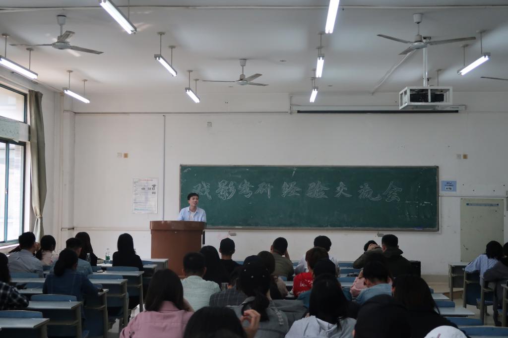与广播电视编导专业不同,戏剧与影视文学专业座谈会采取了2019届优秀毕业生考研经验分享的方式。闫广祺、张明浩、王晓晨、吴悦、王明明、陈通受邀参会分享考研经验,会议由2016级戏影班长徐从超主持,系主任贺彩虹参加活动。徐从超对戏影专业的考研情况作简单介绍后,六名毕业生分别上台做经验分享。其中,成功考取北京大学电影方向的张明浩从学习经历、答题技巧等方面分享了自己的考研经历,他建议不要将考研战线拉太长,而要把考研当作学习之路,一鼓作气。分享会后,贺彩虹介绍了戏剧影视文学专业的发展和成就,让同学们了解到专业的现状,随后根据自身经历和毕业生分享的经验,给同学们总结了考研指导建议,并鼓励考研同学应对考研坚定信心并多与老师交流,他还介绍了历年来我院本科生考研及关于研究生的相关政策,以便同学更好把握相关事项。在互动环节,同学们积极提问,贺彩虹耐心解答,并对本次考研座谈会进行