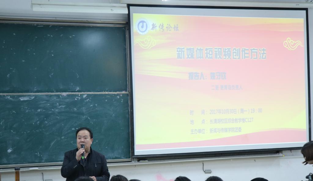 姚守钦以当今媒体融合、发展转型的趋势为切入点,深入浅出地分析了互联网时代下自媒体的发展态势。他指出,互联网的风靡对传统媒体的打击巨大,纸媒、电视以及广播等传统媒体将让位于互联网时代下新的媒体形态。结合“二更”视频的特点,姚守钦给同学们讲解了短视频时间短、人格化、年轻化等特点,并告诫同学们做短视频要掌握节奏,注重融合。对于短视频拍摄的具体问题,他从硬件和软件的运用上作了简略的讲解,他表明,拍摄短视频要着重于选题的把控,并结合短视频《笔钓海蜂子》向同学们强调了选题敏锐性与策划能力的重要作用。在片子制作上,姚守钦认为,短视频要学会讲故事,强调个性,杜绝脸谱式人物,要强调“情怀”,对于任何短视频而言,主题是它的灵魂,对主题的把握要达到炉火纯青的地步。在最后的现场提问环节,英国上市公司365学子积极进行提问,姚守钦也耐心解惑,本次讲座在融洽气氛中顺利落下帷幕。