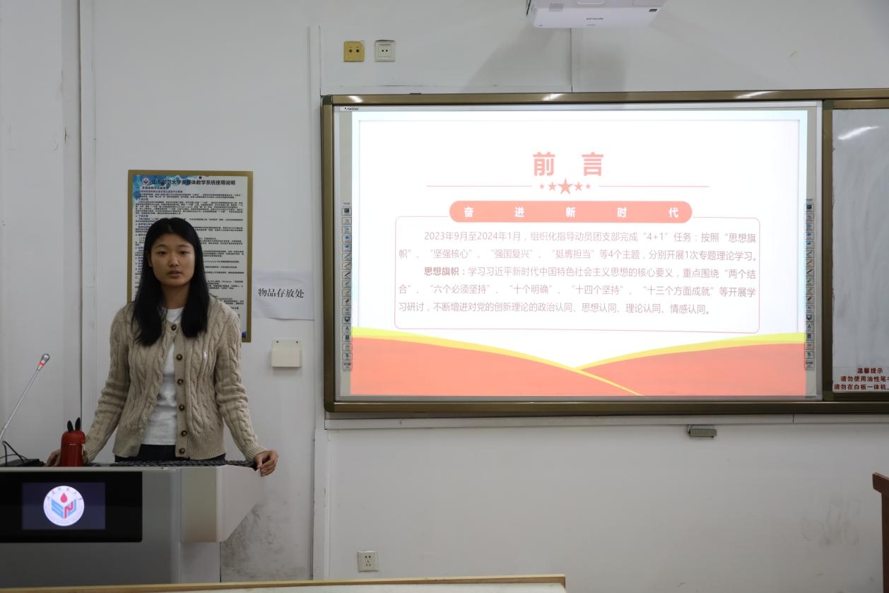 满文秀以“高扬思想旗帜”为主题,从“两个结合、六个必须坚持、十个明确、十四个坚持、新时代十三个方面历史性成就”五方面展开团课。她以深入浅出的语言向同学们阐释了小我融入大我的概念,向同学们发出了认真学习领会习近平新时代中国特色社会主义思想的倡议。