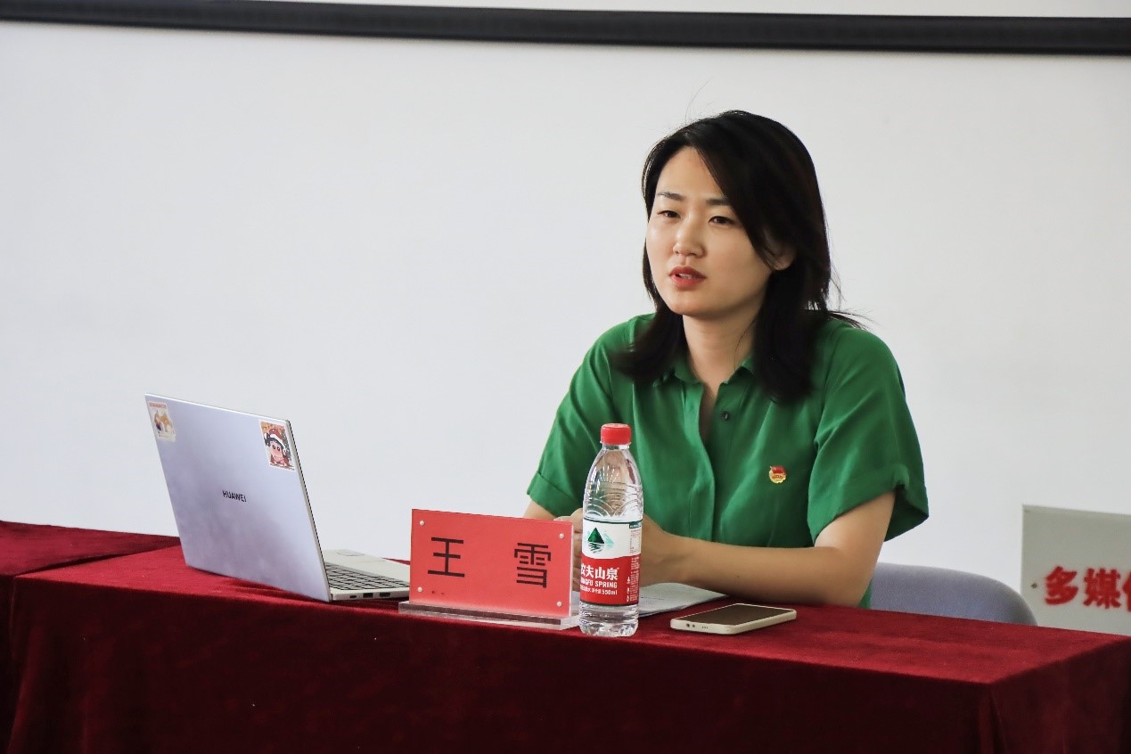 王雪围绕习近平总书记的重要讲话精神,从“青年工作的战略地位”、“中国青年运动的时代主题”、“青年工作的历史经验”、“青年工作的职责使命”和“青年一代健康成长的正确道路”五个方面带领大家了解了青年工作的重要性,从历史的角度向大家阐述了“总书记为什么高度重视青年和青年工作”,并结合短片带领大家深入了解共青团发展的时代背景,全面回顾百年来共青团坚定不移听党话、跟党走的青春历程。她指出习近平总书记在大会上对共青团员提出的五点要求对同学们非常实用,勉励同学们将其作为自己学习努力的方向,明确自己的发展目标,提高自己的专业素养,做信念坚定、锐意创新、善于斗争、无私奉献、崇德向善的新时代青年,在自己的青春赛道上跑出最好成绩。