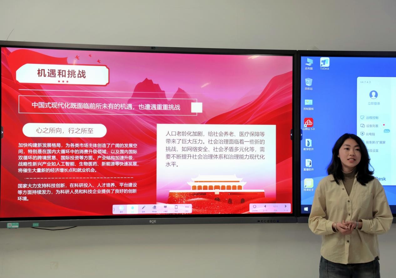 万凌菲以“青春正当时,奋进新征程”为主题,深刻剖析了中国式现代化的丰富内涵与深远意义,着重强调了青年群体作为国家未来与希望的重要角色,在中国式现代化进程中肩负着崇高的历史使命。她号召广大青年充分发挥自身的创造力与活力,以实际行动践行现代化理念,为推动高质量发展贡献智慧与力量。