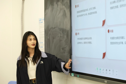 许京雯以“践行社会主义核心价值观,争做新时代有为青年”为主题,对社会主义核心价值观的内涵作具体说明,带领大家进一步明晰了新时代青年的历史责任与时代使命,鼓舞大家将社会主义核心价值观与青年实现自身价值相融合,在实现中华民族伟大复兴的征程中书写属于自己的华彩篇章。