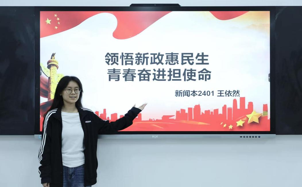 王依然以“领悟新政惠民生,青春奋进担使命”为主题,深入阐释民生新政的核心内涵与价值旨趣,号召青年学子立足实践阵地,以实干之力服务民生一线,在新时代的广阔舞台上彰显青春作为。