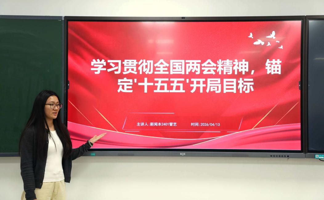 管艺以“学习贯彻全国两会精神、锚定‘十五五’开局目标”为主题开展宣讲,紧扣2026年全国两会精神核心要义,系统展望“十五五”开局发展蓝图,结合自身成长深入阐释新时代青年的使命担当,引导广大青年把个人理想融入国家发展大局,以实干姿态投身新征程。
