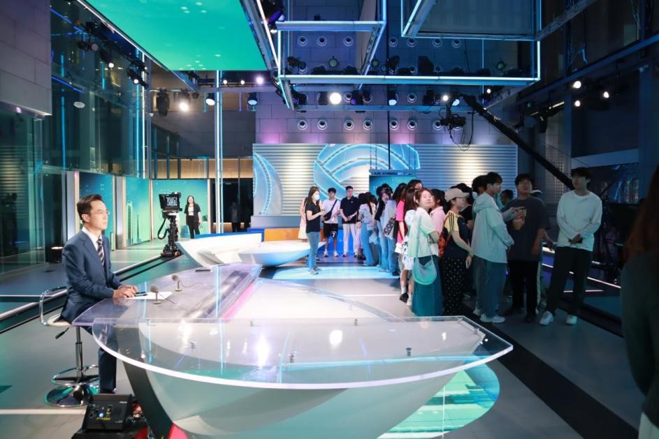 在山东广电传媒产业大厦,师生们参观了山东广播电视台展览馆。这个展览馆总面积1100多平方米,共3层,分为过去、现在、未来3个主题展区,以历史事件为重点,通过大量的图片、文字、视频、实物和场景再现、互动体验等多种形式,展示了山东广播电视台自1948年济南战役胜利后接管原国民党政权“山东广播电台”、建立人民广播事业以来70余年的发展历程和取得的辉煌成就。这不仅让同学们触摸到了新闻史的厚重和传媒人的荣光,也进一步激发了他们为新闻传播事业贡献力量的决心。
