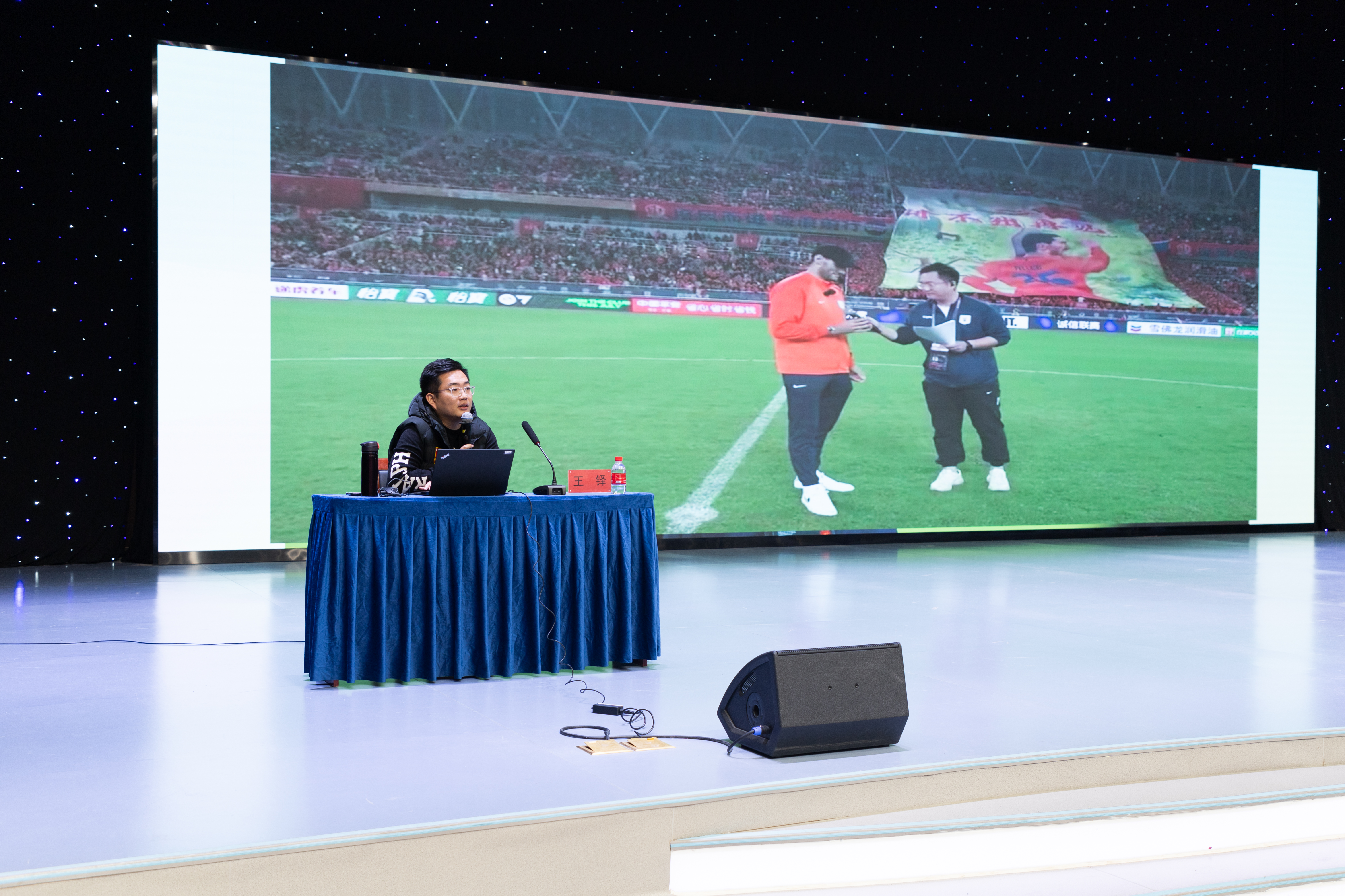 王铎以足球赛事解说为例,从新媒体环境下的转型冲击、融媒体时代的机遇挑战、记者的职业素养要求等方面讲述融媒体时代下体育新闻的报道与传播,并向同学们分享了自己作为广电一线人对于融媒体时代背景下体育报道和传播的心得体会及思考。他指出,当下的体育新闻报道需充分利用新媒体的优势,创新报道方式和内容,以满足观众的多元化需求。随着融媒体时代的到来,体育赛事融入了大量的年轻元素,这既是摆在传统媒体面前的一大挑战,也是新兴发展的契机。