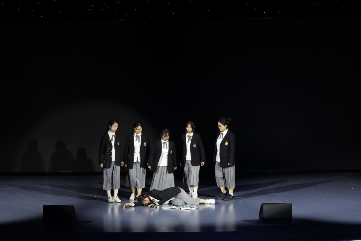 开幕式上,三个剧组分别带来精彩绝伦的现场演出。一群学生,满腔热情,《寻找春柳社》以排演关于春柳社的“戏中戏”为主线,在角色与时空的变换间解说话剧的本质,引领演员与观众寻找中国话剧若隐若现的源头,于其中深刻感受话剧的魅力。《追光者》以主人公竹光的内心变化为中心展开故事,向观众呈现了主人公从迷失自我到找寻自我的成长历程,鼓舞在场观众不惧世俗目光,勇敢做自己,在追光路上绽放光芒。《弹琴给谁听》以校园生活为背景,向观众还原了一场沉浸式的剧本杀,演绎出主角王以沫在在不同选择下的不同结局,形式新颖独到,情节曲折反转,于生动情景中引发全场观众对人性与善恶的思考。演员们以扎实的台词功底、默契的动作配合为观众带来了一场场视听盛宴,现场掌声不断。