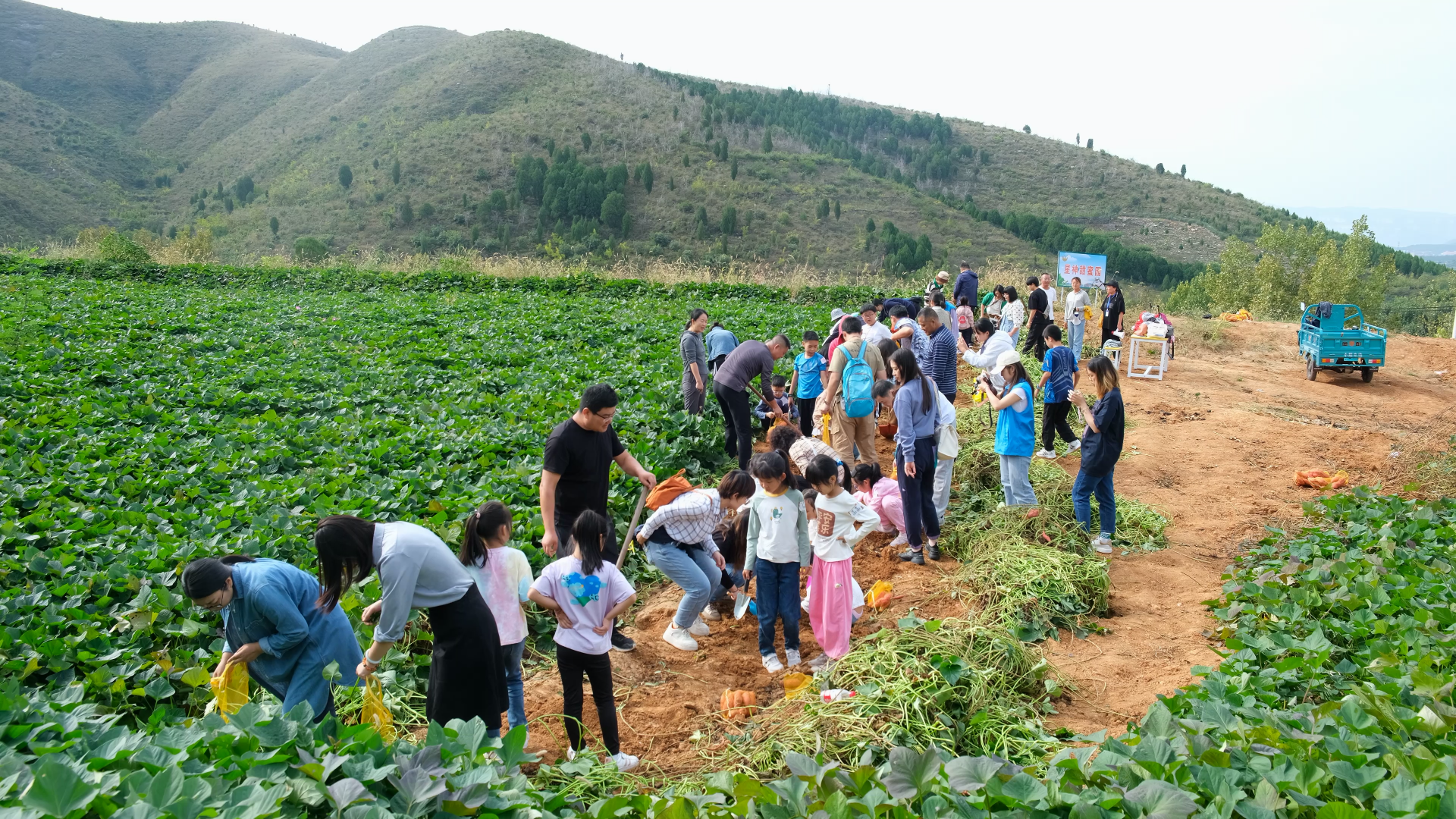 上午九点,师生们来到位于济南南部山区的星神爱心农场,开启了本次“蜜薯直播”的公益首秀。这支小型“新闻公益+”团队,主播、摄录、平台服务分工明确、配合默契。