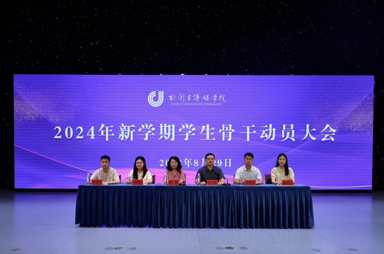 8月29日,学院于长清湖校区文浚楼演播大厅召开2024年新学期学生骨干动员大会。学院党委副书记、纪委书记陈文亮,学工办主任、团委书记张慧,辅导员陈军晓、赵薛娇、董朔汐、刘文泽出席本次会议,我院全体学生干部参会。会议由张慧主持。
