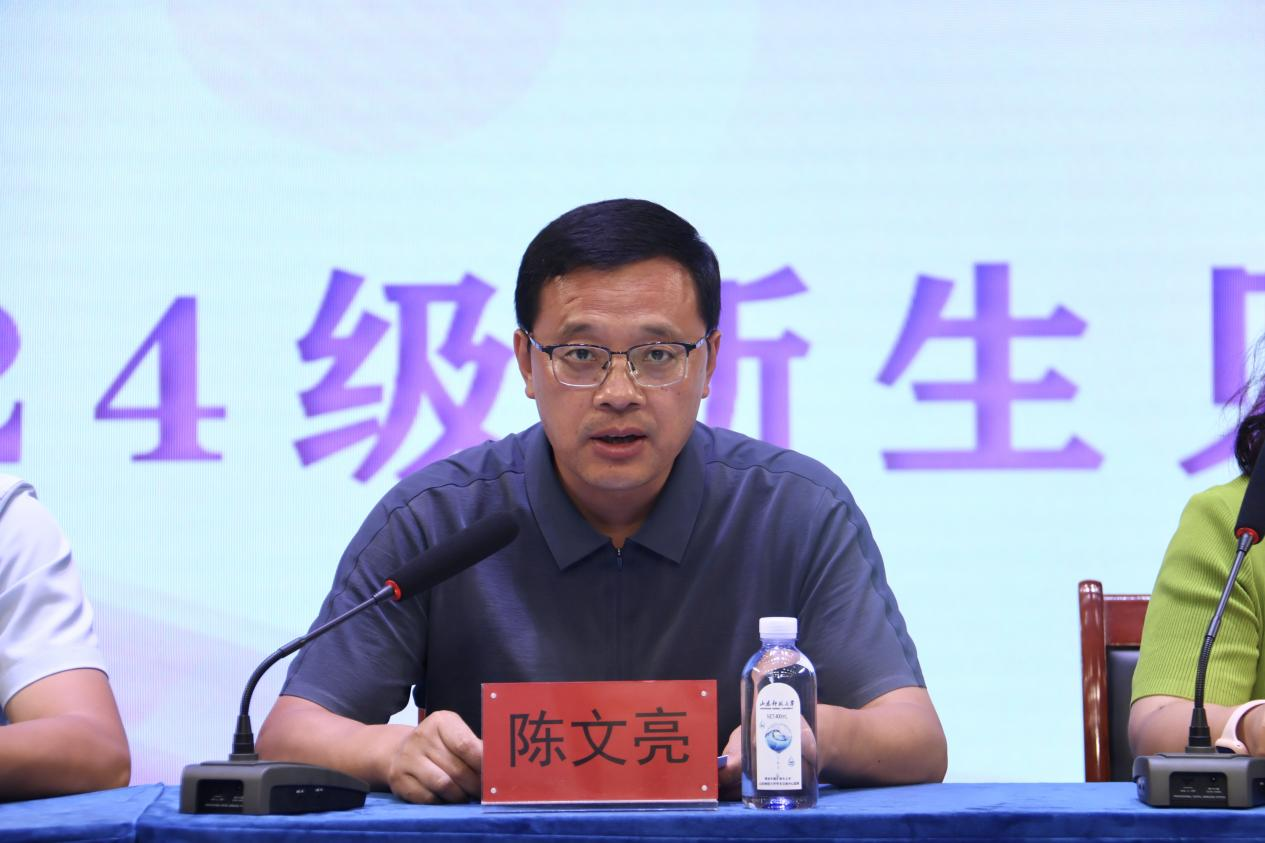 陈文亮对2024级新同学们的到来表示热烈欢迎和衷心祝贺。他向同学们详细介绍了学院沿革历史及现今发展概况,并在同学们踏入人生新征程之初,提出三点殷切期盼:一是心系家国,做时代使命的担当者,以青春之我、奋斗之我,努力为民族复兴铺路搭桥,为祖国建设添砖增瓦,为党和国家事业发展贡献青春力量、展现青春担当;二是博学笃行,做锐意进取的奋斗者,重点把握“有字之书”和“无字之书”的融会贯通,全面建设“根深”与“叶茂”的知识体系,为今后的创新突破积蓄持久能量;三是开拓创新,做敢想敢为的探索者。他激励同学们,提升自主创新意识与实践能力,在精通专业知识的基础上,走出熟悉的领域,探前所未有之路,做前所未有之事,提高创新本领,解决真正问题,努力成为德智体美劳全面发展的社会主义建设者和接班人。