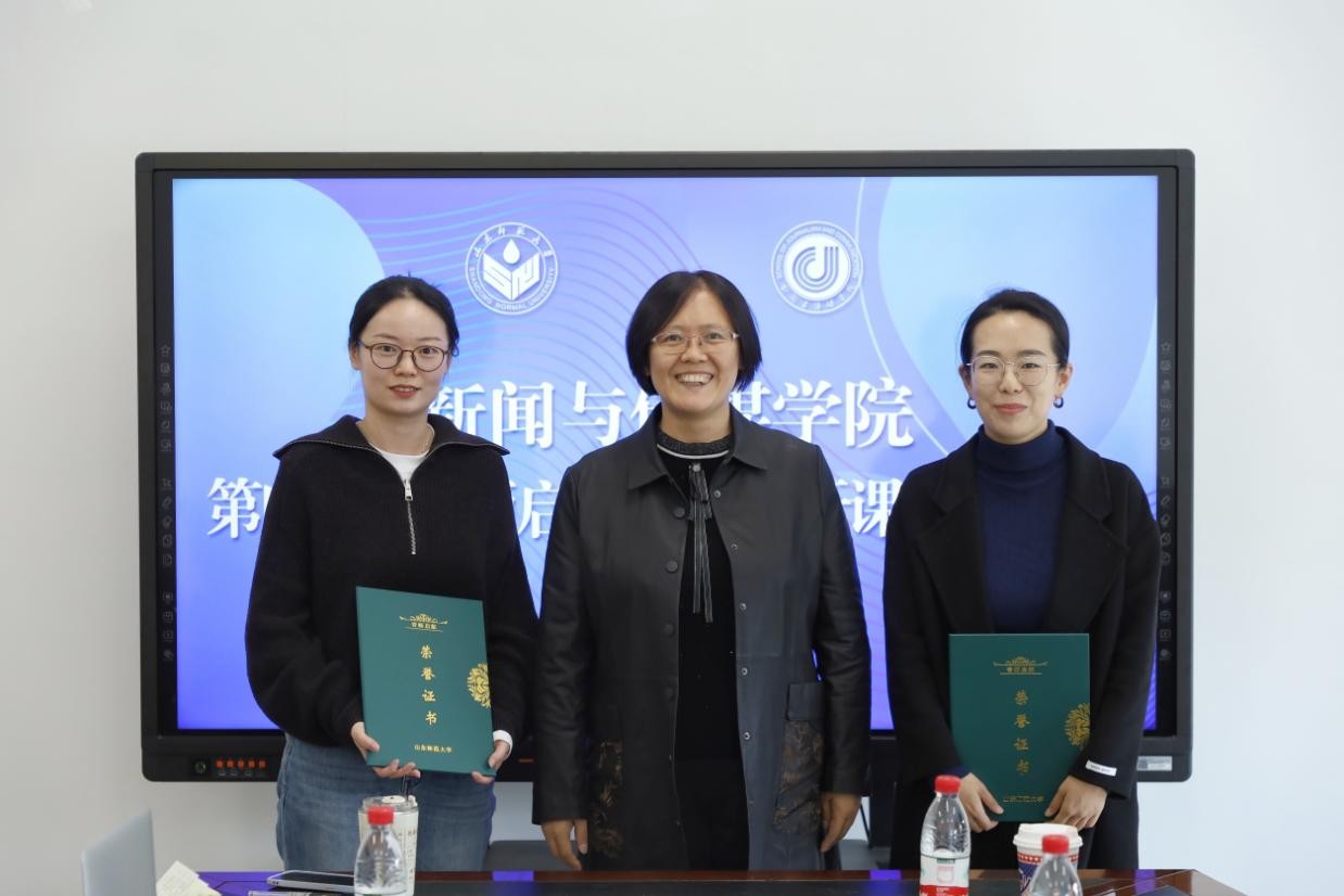 课后交流研讨环节后,王宏为青年教师郭洁、车晓宇颁发荣誉证书。