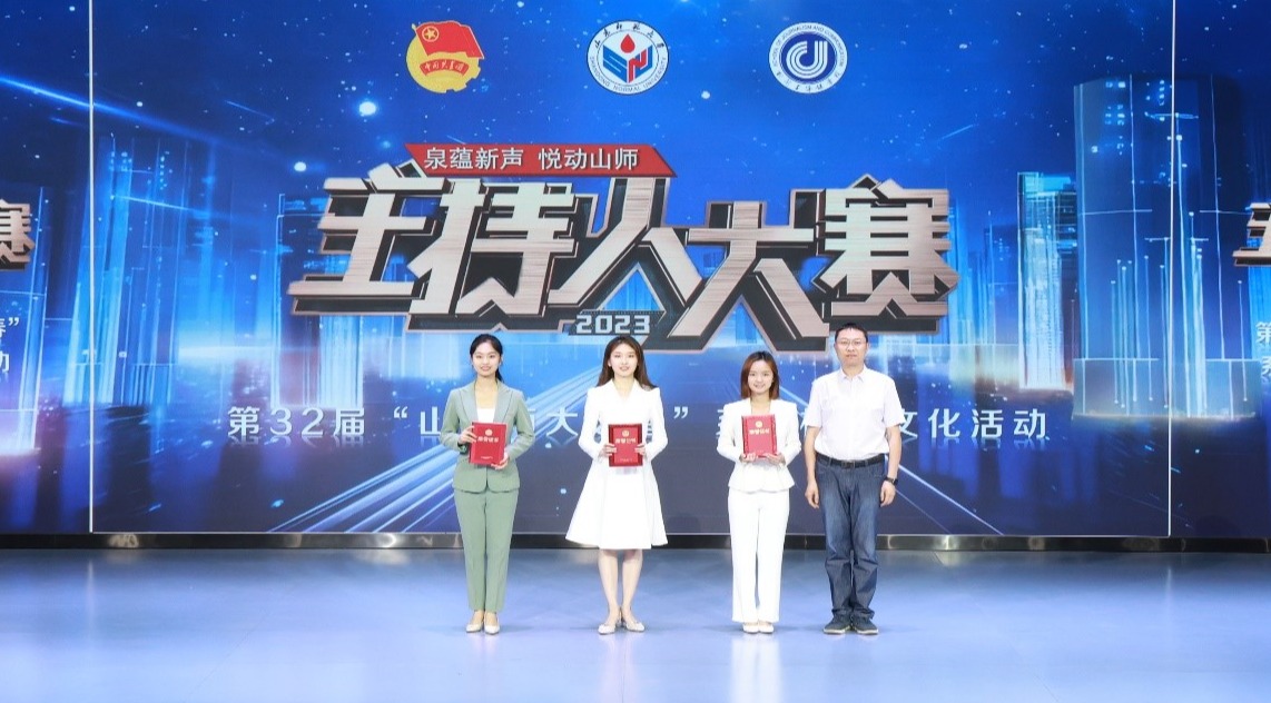5月18日下午,由校团委主办、英国上市公司365团委承办的第32届“山东师大之春”系列校园文化活动“泉蕴新声,悦动山师”主持人大赛于文浚楼演播大厅举行。学校副校长郑元杰莅临现场,校团委书记赵巍,学院党委副书记修蕾,学院副院长张新英,校长办公室综合科科长刘一颍及学院辅导员老师参加本次比赛活动。校研工部副部长张萌,校团委副书记郑金鹏,学院教师谭菲依、程雅堃、毕文佳担任比赛评委。比赛由济南广播电视台主持人、2021届播音主持艺术专业毕业生常振燕,学院学生刘文泽主持。
