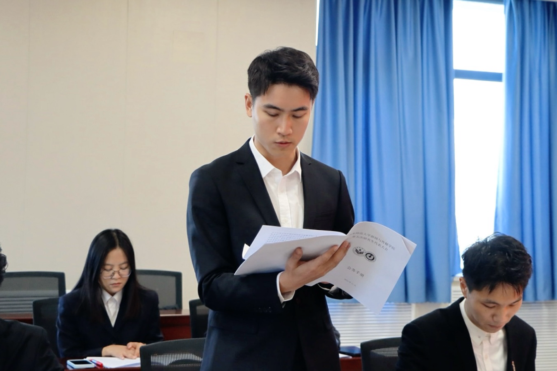 大会在庄严的国歌声中拉开序幕,全体成员起立,高唱国歌。研究生会主席司洪源作工作报告,他表示,在过去的一年中,学院研究生会在学院党委的悉心指导下,始终坚持思想引领、齐心协力、务实前行的发展理念,将“全心全意为广大研究生服务”的宗旨植根于心,贯彻“团结进取、求真务实、精简高效”的工作作风,立足专业特色,争当宣传工作“排头兵”。未来,学院研究生会始终坚持以习近平新时代中国特色社会主义思想为根本遵循,紧扣时代脉搏,持续优化“三育一品”工作格局。