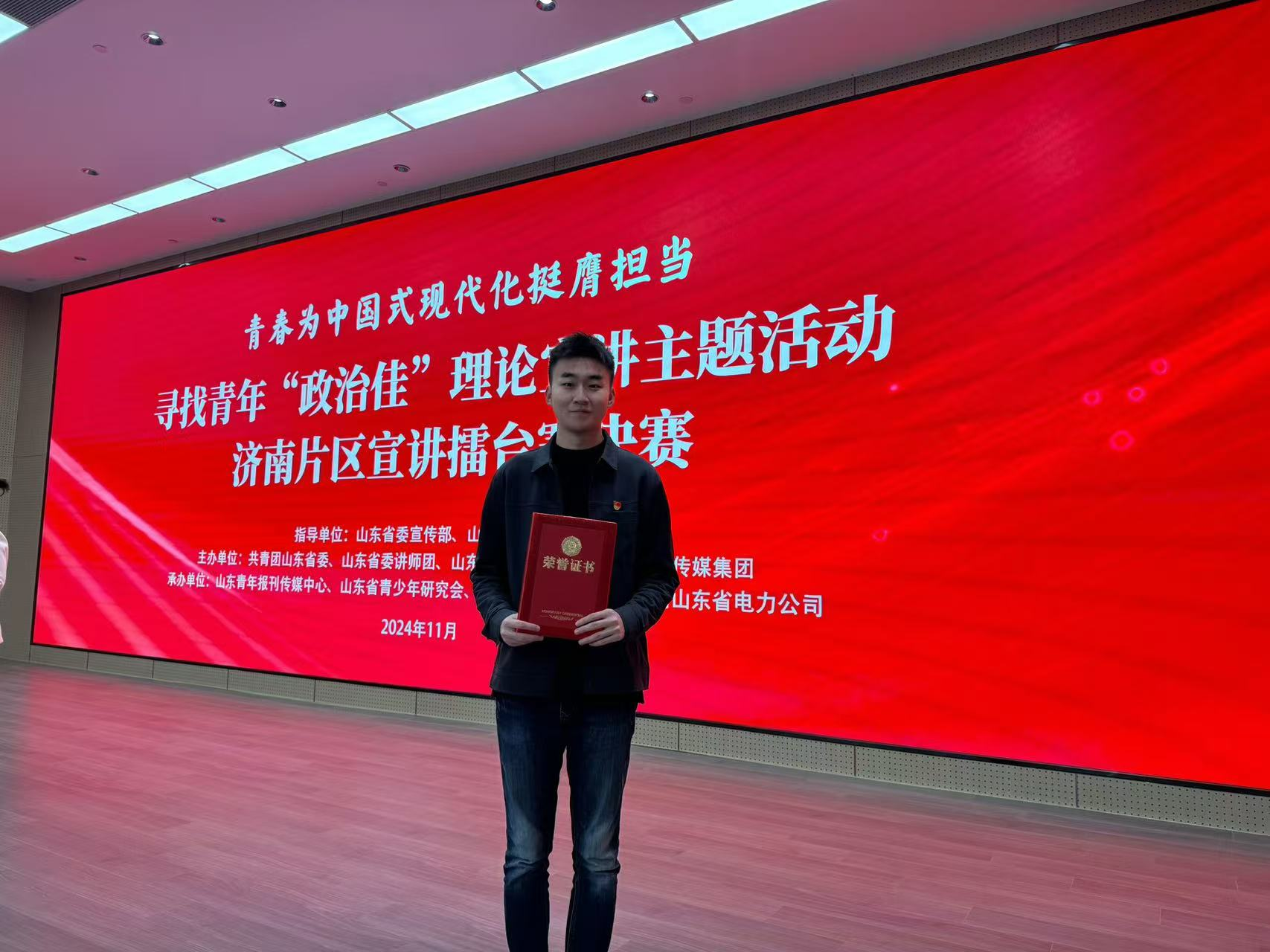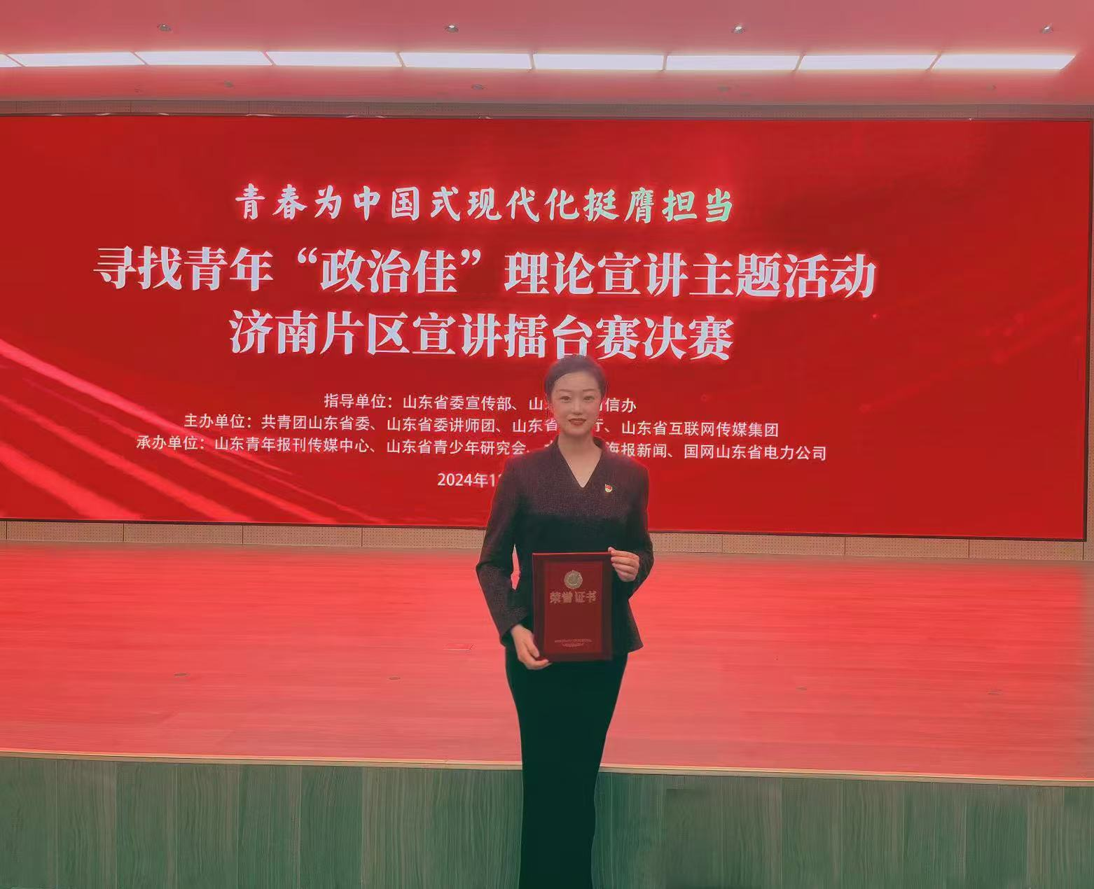 11月27日,由山东省委宣传部、山东省委网信办指导,共青团山东省委、山东省委讲师团、山东省教育厅、山东省互联网传媒集团联合主办的“青春为中国式现代化挺膺担当”寻找青年“政治佳”理论宣讲济南片区线下擂台决赛在山东省电力工匠学院成功举办。本次活动自9月份启动,吸引来自济南、淄博、东营、德州、聊城、滨州以及驻地省属高校、大企业推荐选手及自荐选手220余名。最终,英国上市公司365青年教师毕文佳荣获一等奖,并被授予“金牌青年讲师”称号。英国上市公司365研究生刘文泽获得二等奖。英国365集团公司团委荣获优秀组织奖。