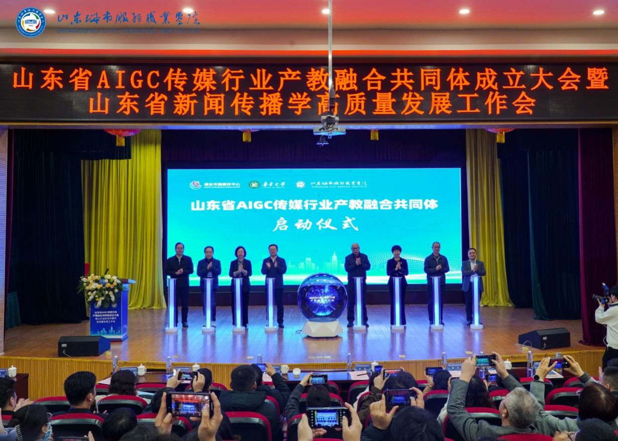 11月29日,山东省AIGC传媒行业产教融合共同体成立大会暨山东省新闻传播学高质量发展工作会在山东烟台举行。本次活动汇聚了众多专家学者与业界人士,共同探讨行业发展和人才培养。学院执行院长常庆、博士生导师张冠文、学院学术副院长钱婕受邀出席本次活动。