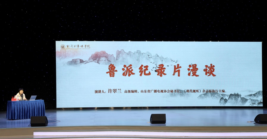许翠兰以“鲁派纪录片漫谈”为题作分享,探讨了鲁派纪录片的诞生和发展。在讲座中,许翠兰首先介绍了中国纪录片的各大流派,指出山东纪录片在创作上经历了厚积薄发的过程,形成了独特的鲁派风格。许翠兰表示,深耕文化沃土的主题特征、精英叙事视角特点、大气稳重的美学风格、成熟的创作体系以及丰富的作品矩阵,是鲁派纪录片的重要组成部分,也是鲁派纪录片在新时代背景下,对文化传承和创新所做出的积极贡献。