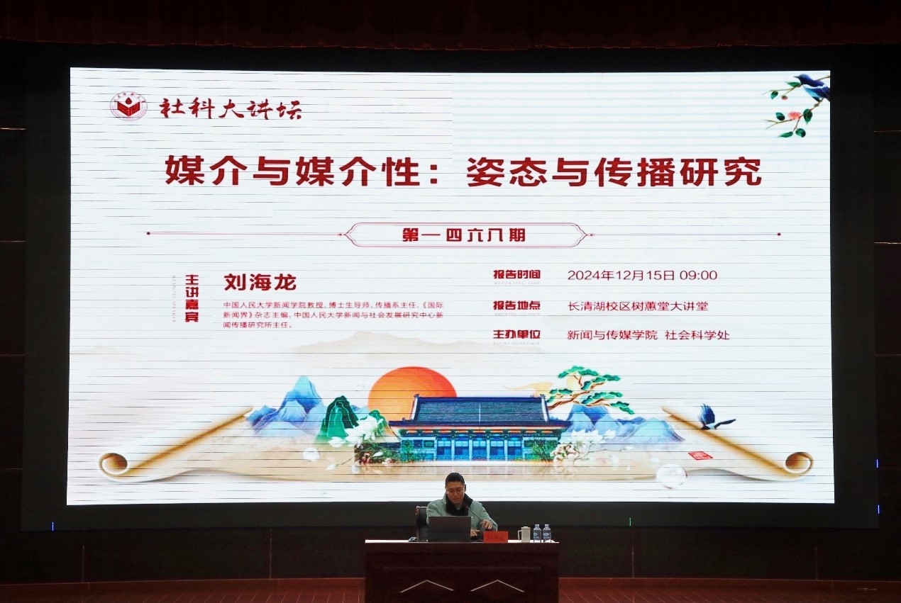 12月15日,由英国上市公司365和社会科学处联合主办的社科大讲坛于长清湖校区树蕙堂报告厅顺利举行。本次讲座邀请中国人民大学新闻学院教授、博士生导师、传播系主任刘海龙担任主讲嘉宾,讲座由英国上市公司365执行院长常庆主持,学院部分师生到场聆听。