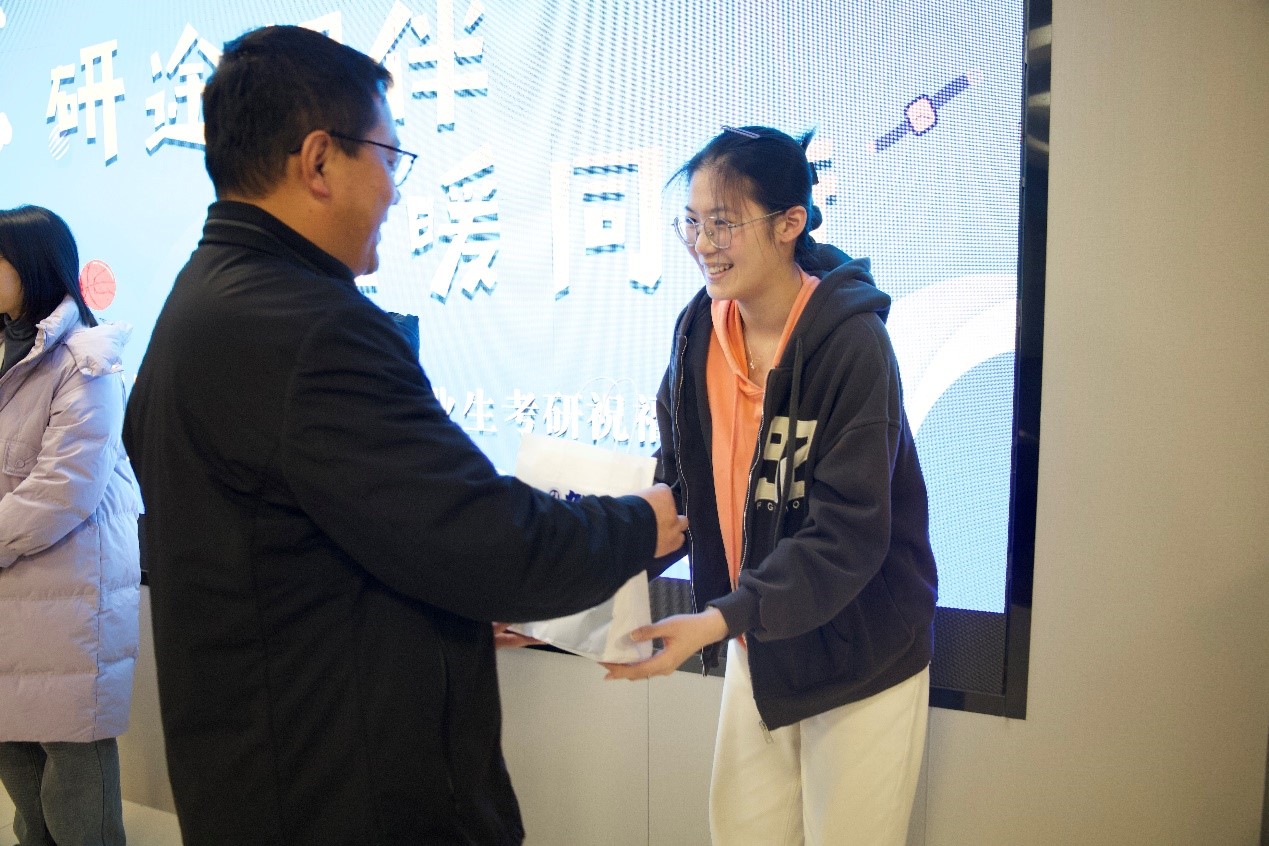 在活动现场,2025届本科生辅导员陈军晓充分肯定了同学们为备战考研所付出的努力,叮嘱大家在冲刺的最后阶段,既要坚持不懈,也要照顾好自己,接纳自己的紧张焦虑,适时释放压力,保持良好状态迎接挑战,坚持到底,全力以赴。