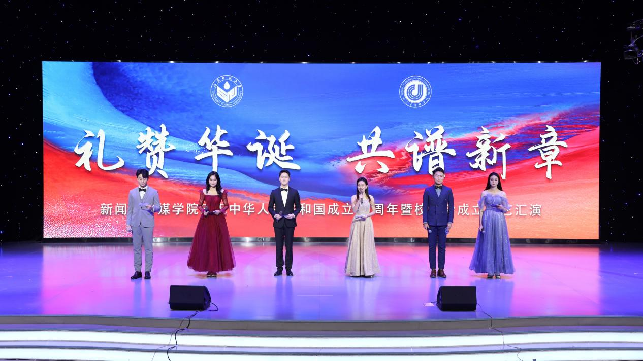本次庆祝中华人民共和国成立75周年暨校友会成立文艺汇演由学院师生及数位杰出校友携手演绎,通过舞蹈、歌曲、配音秀、T台、小品等多种形式展现了新传师生的独特风采。随着开场舞《同爱同在》动感旋律的响起,演出正式拉开帷幕。杨景川、成若冉、姚沁睿等同学带来歌曲串烧《乐动年华》,让大家沉醉于这场美妙的音乐盛宴之中。古典乐舞《入画江南》充满了诗情画意,舞蹈温婉柔美,与传统乐器的美妙动听完美融合。校友领导代表张军、王晓华、金鹏与学院执行院长常庆共同登台,深情演绎经典歌曲《二十年后再相会》,他们用歌声凝聚起校友力量,唤起了大家对校园时光的美好回忆,激发了校友们对未来再次相聚的无限憧憬。由高静怡、孙睿、仁宝英等同学带来的T台秀《Star Beat》成为晚会的一大亮点,潮流服饰与个性创意肆意碰撞,时尚风暴席卷现场。