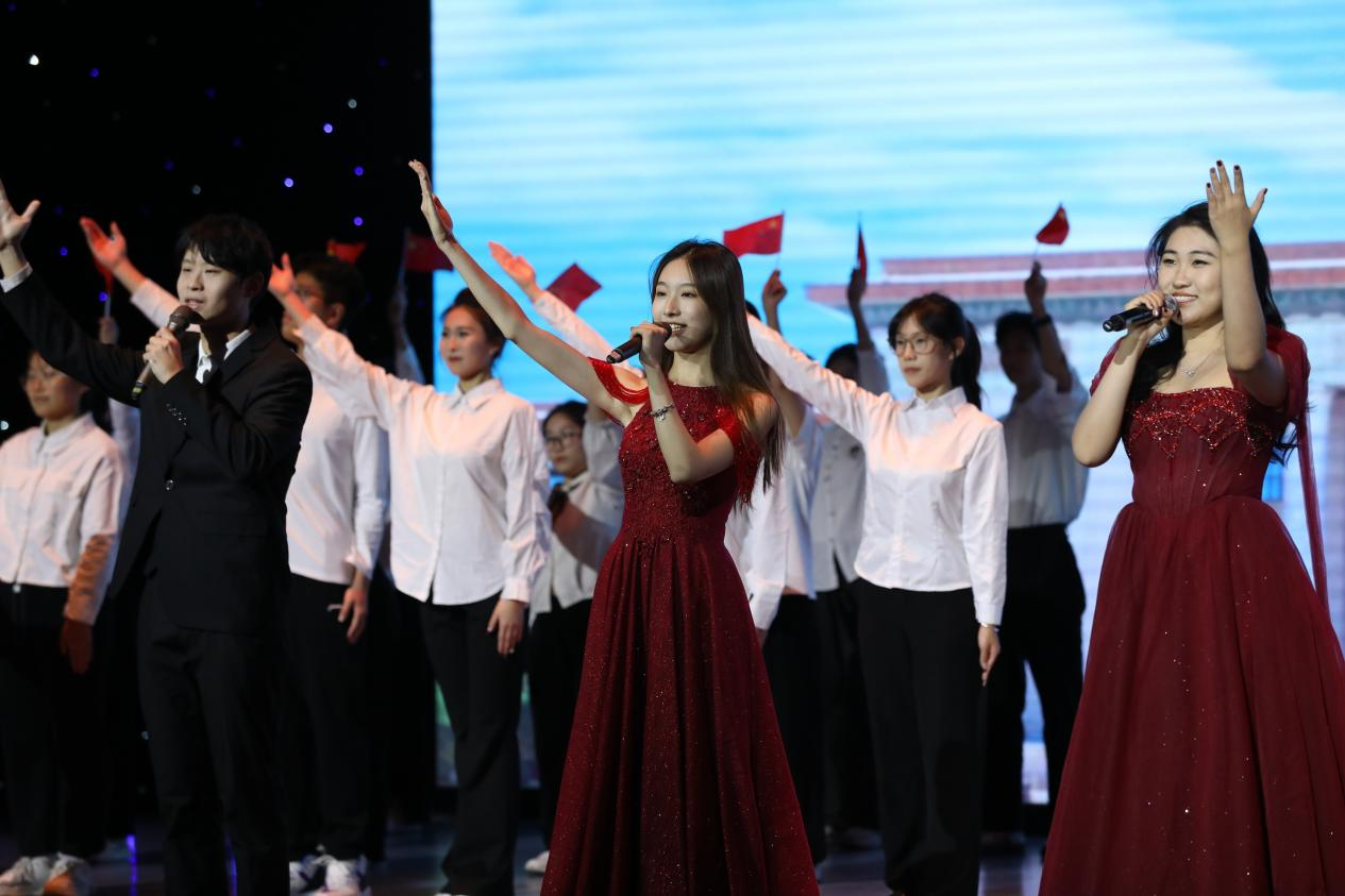 国旗飘扬,《我爱你中国》随之响起,新传合唱团用真挚的歌声,唱出了对祖国的无限热爱和对新中国成立75周年的真情祝福,悠扬的旋律瞬间点燃了现场观众的爱国热情。最终,本次文艺汇演在王月娥、陈军晓老师合唱结束曲《共筑中国梦》中圆满落幕。