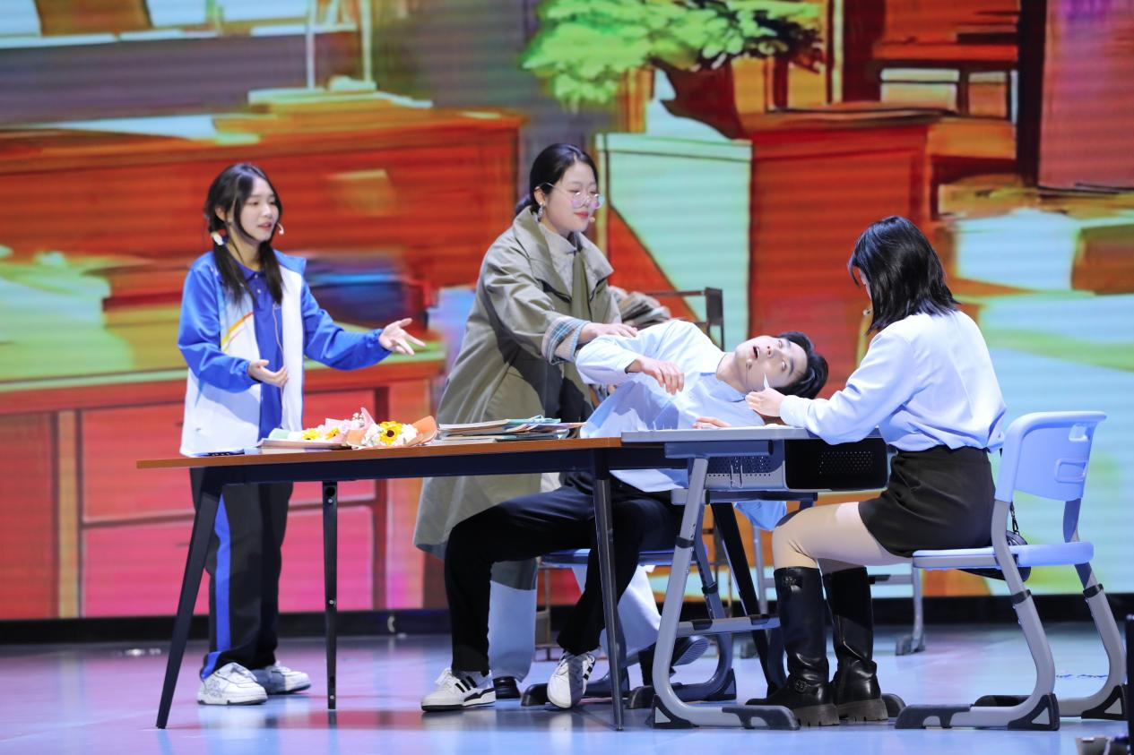 优秀校友王冠松演绎的歌曲《可可托海的牧羊人》传达出了支教之旅的不易,彰显出勇于担当,甘于奉献的崇高精神境界。由王亦凡,林倬安,陈梦蕾等同学带来的情景朗诵《答卷》中,山师人用深情的演绎追溯往昔岁月,以激昂的语调叩问教育初心,于时代的浪潮里眺望未来征途。由英国上市公司365舞蹈队带来的健美操《Darling》用灵动的身姿和明快的节奏,展示新传学子青春活力。英国上市公司365青年教师毕文佳带来《照进大山深处的光》,深刻诠释了传媒工作者在新时代的责任与担当,用榜样的力量激励在校学子勇敢追逐梦想。由申丽雪,刘安妮,胥程冉等同学带来的配音秀节目《声动奇缘》,用声音将赋予角色新的生命,让观众仿佛身临其境,置身于一个个不同的故事世界之中。由熊佳彬、石益谦、潘雨洁、王志航、阎泓锦带来的小品《再见,老师》以独特的视角展现了深厚的师生情谊,观众席笑声不断,掌声不止。