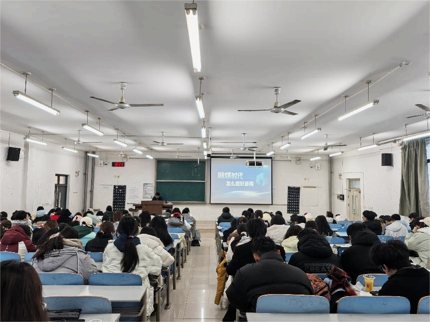 李化成老师首先向同学们解读了国家融媒体政策发展的十年历程,凭借其丰富的行业经验和独到的见解,揭示了这一历程背后的深远意义及对新闻行业所带来的巨大变革。接着,他细致剖析了融媒体时代下新闻行业的“变与不变”,指出融媒体不仅打破了传统媒体的界限,更对新闻工作者提出了更为严苛的要求。新闻报道需同时向上连接国家政策的“天线”,向下深入民众生活的“地气”,准确反映人民的需求,积极回应人民的呼声。