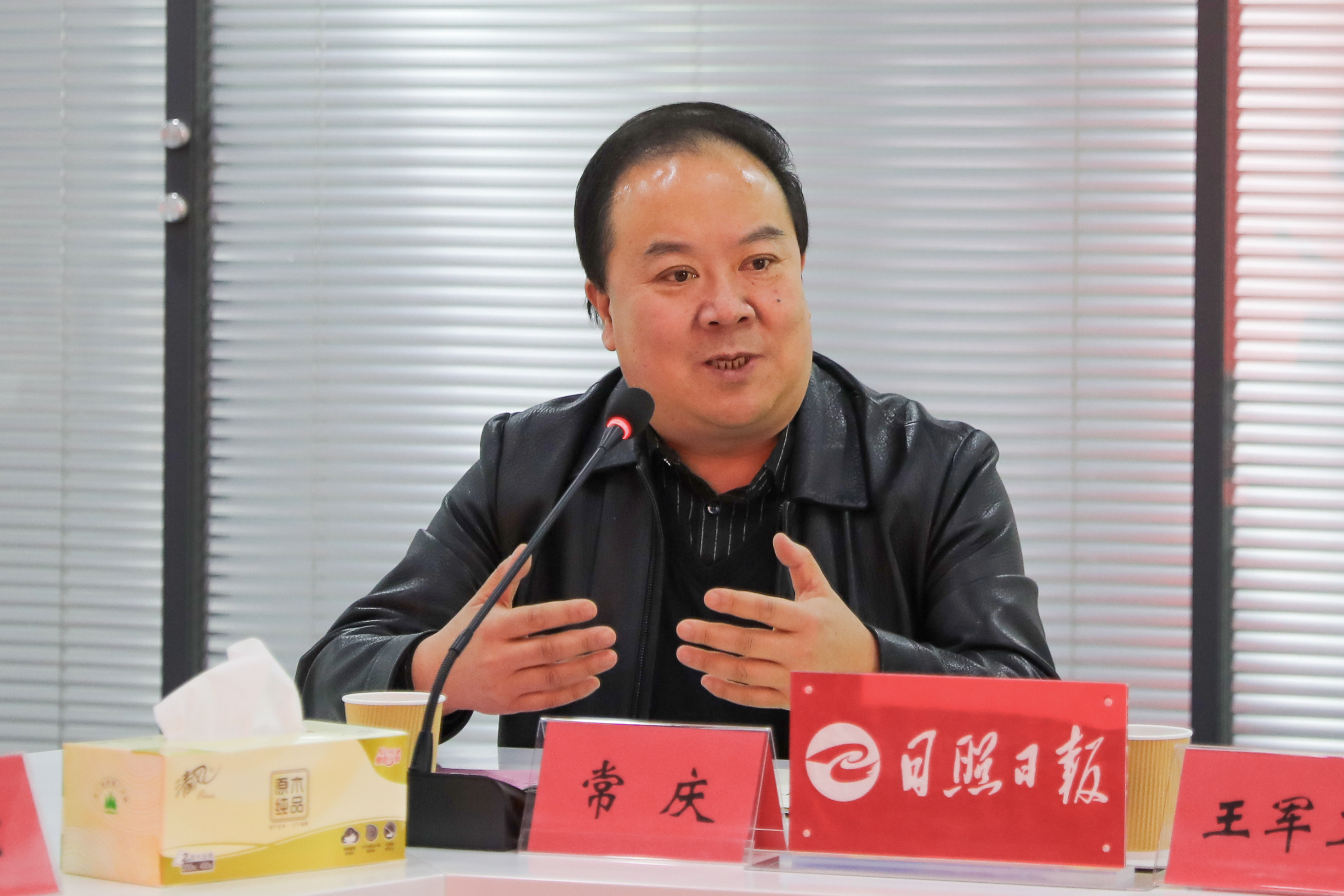 常庆首先向本次战略合作签约和“实践教学基地”揭牌表示祝贺,并介绍了学院的院情概况、专业设置等。他表示,在实地参观后深刻感受到报社在媒体深度融合改革中积累了先进理念,搭建了比较全面成熟的融媒体矩阵,媒体理念和实操走在了前列,期待与日照日报社(集团)在人才培养、学术研究、传播力影响力等方面加强合作,努力取得更多成果。