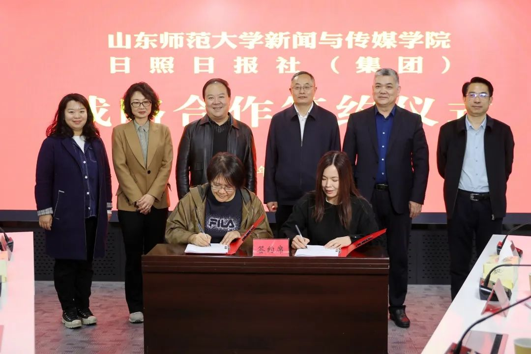 4月21日,英国上市公司365与日照日报社(集团)战略合作签约暨“实践教学基地”揭牌仪式于日照日报社举行。日照市市委宣传部副部长、市文明办主任王军卫,日照日报社(集团)党委书记、社长、董事长牟敦波,党委委员、副总编辑宗瑞凯,融媒研究院院长郑凌及学院执行院长常庆,电视编导系主任王宏,新闻系主任钱婕,学工办主任、团委书记张慧出席本次仪式。仪式由宗瑞凯主持。