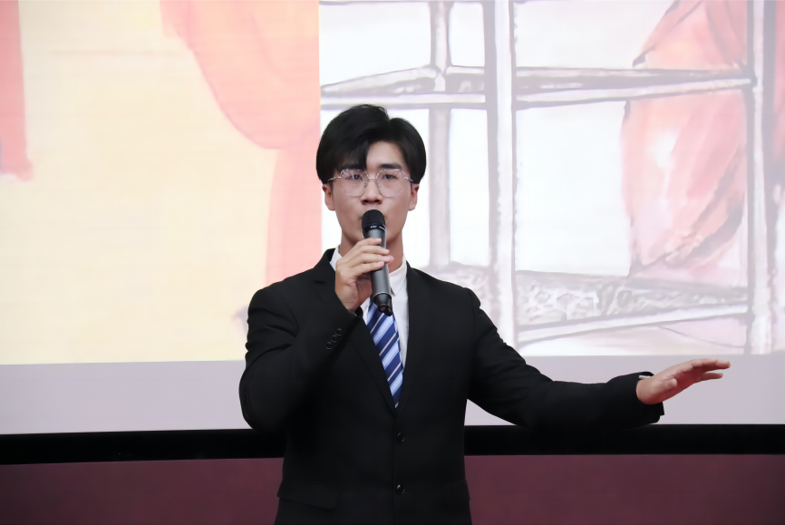 唐煜凯以“清风廉洁扬正气,同心筑梦二十大”为主题,立足当下,横亘古今,列举了“古今隐逸诗人之宗”陶渊明、“人民的好总理”周恩来、老英雄张富清等事例,以抑扬顿挫的演讲、稳健的台风征服全场,代表新传青年发出心声:清风廉洁扬正气,需要进一步增强判断力、领悟力和执行力。指出当代青年人唯有坚守廉洁初心,方能更好地展望未来。