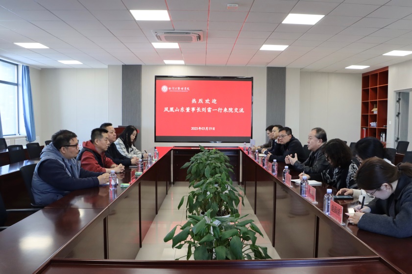 3月19日上午,凤凰网山东董事长刘雷、总编辑尹彦林、副总经理王延亭、视频部主任张兆阳莅临我院交流。学院领导班子成员及部分教师出席本次会议。双方围绕新时代传媒人才培养、校媒协同创新及“大思政课”实践路径等议题展开深入交流。