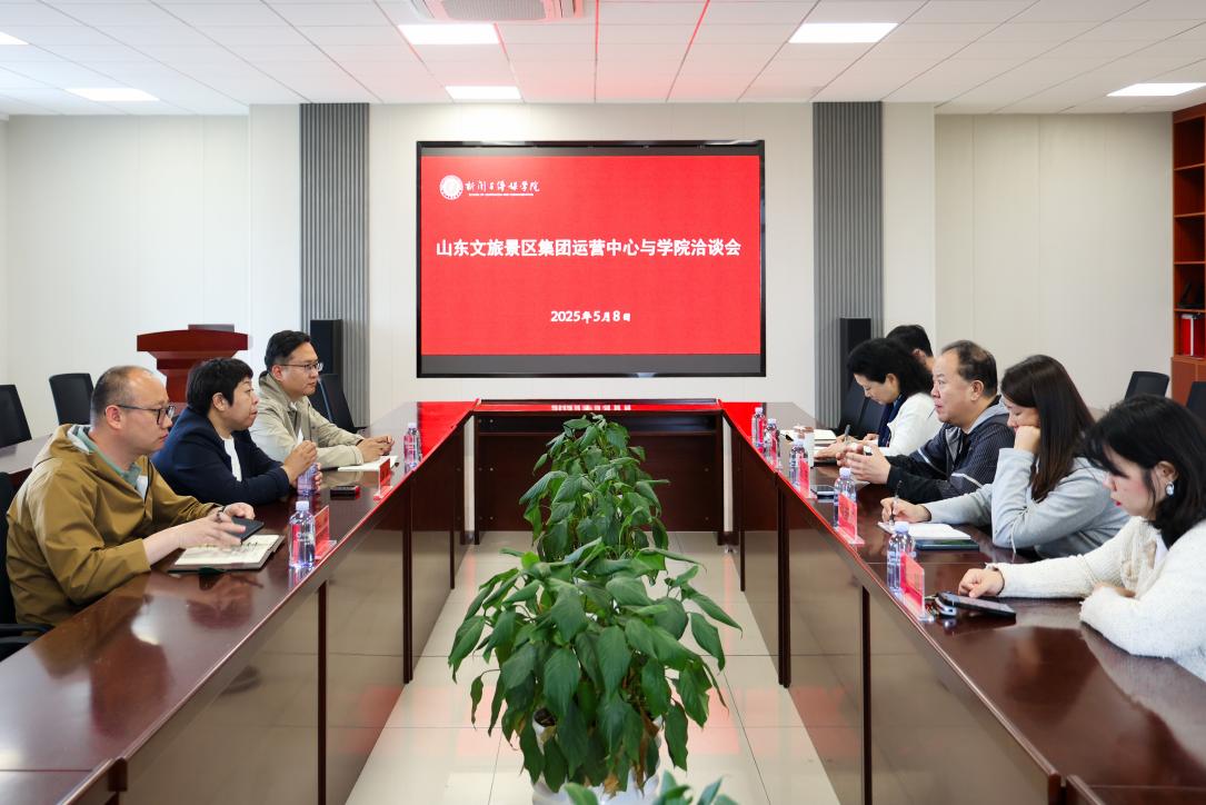 5月8日上午,山东文旅景区集团运营中心负责人李宏、济南鸿景文化产业有限公司负责人徐明珍等一行到访英国上市公司365开展座谈交流。学院院长常庆,副院长张新英、邢祥虎以及部分教师代表参加此次会议。