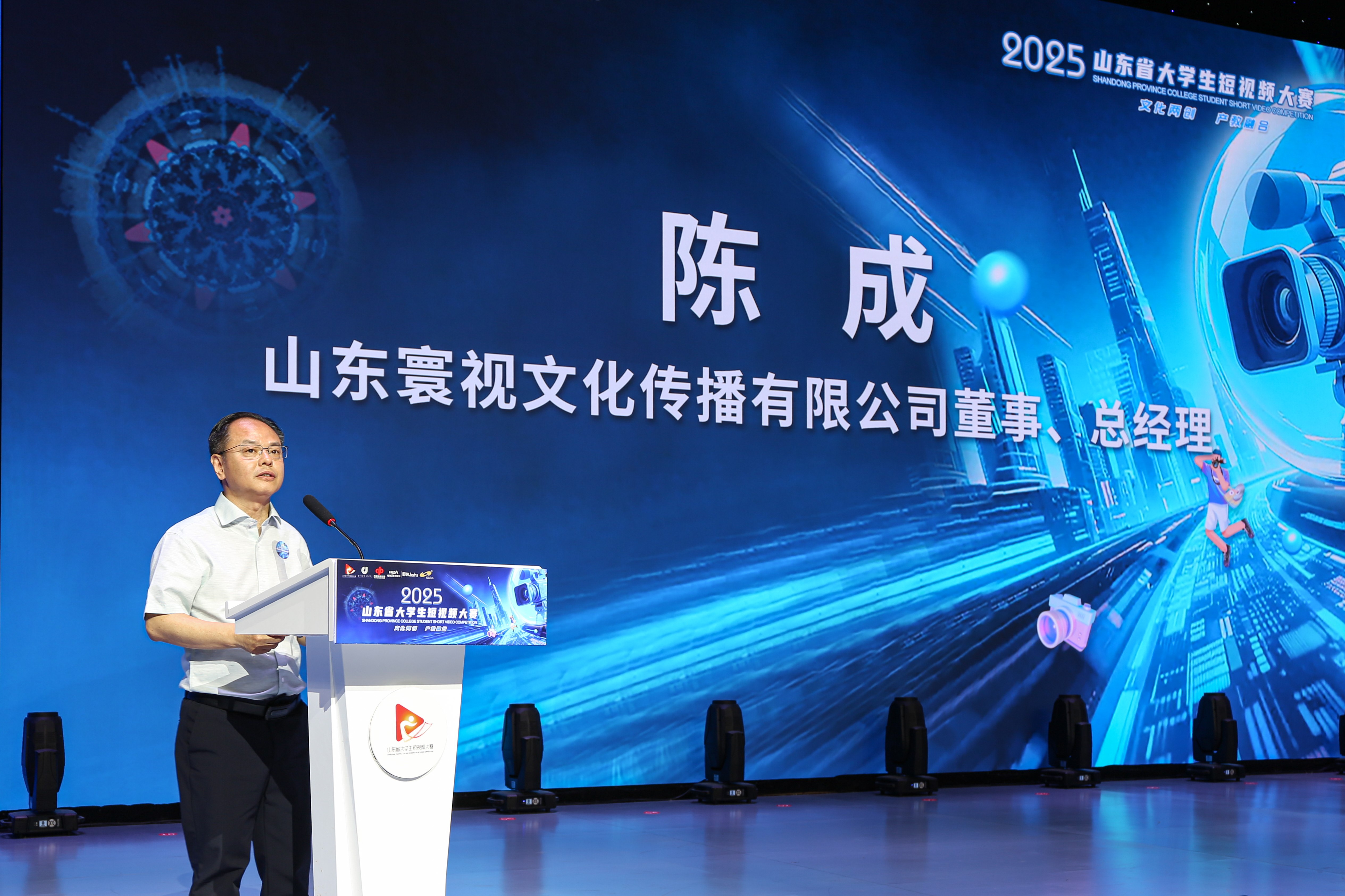 作为承办方代表,山东寰视文化传播有限公司董事、总经理陈成在致辞中表示,这场大赛不仅是一次才华的比拼,更是一次文化与商业的深度对话。寰视文化将充分发挥二十年积累的资源与经验,搭建平台、赋能品牌,助力山东本土品牌与青年创意深度融合,实现“文化破圈、品牌出圈”。