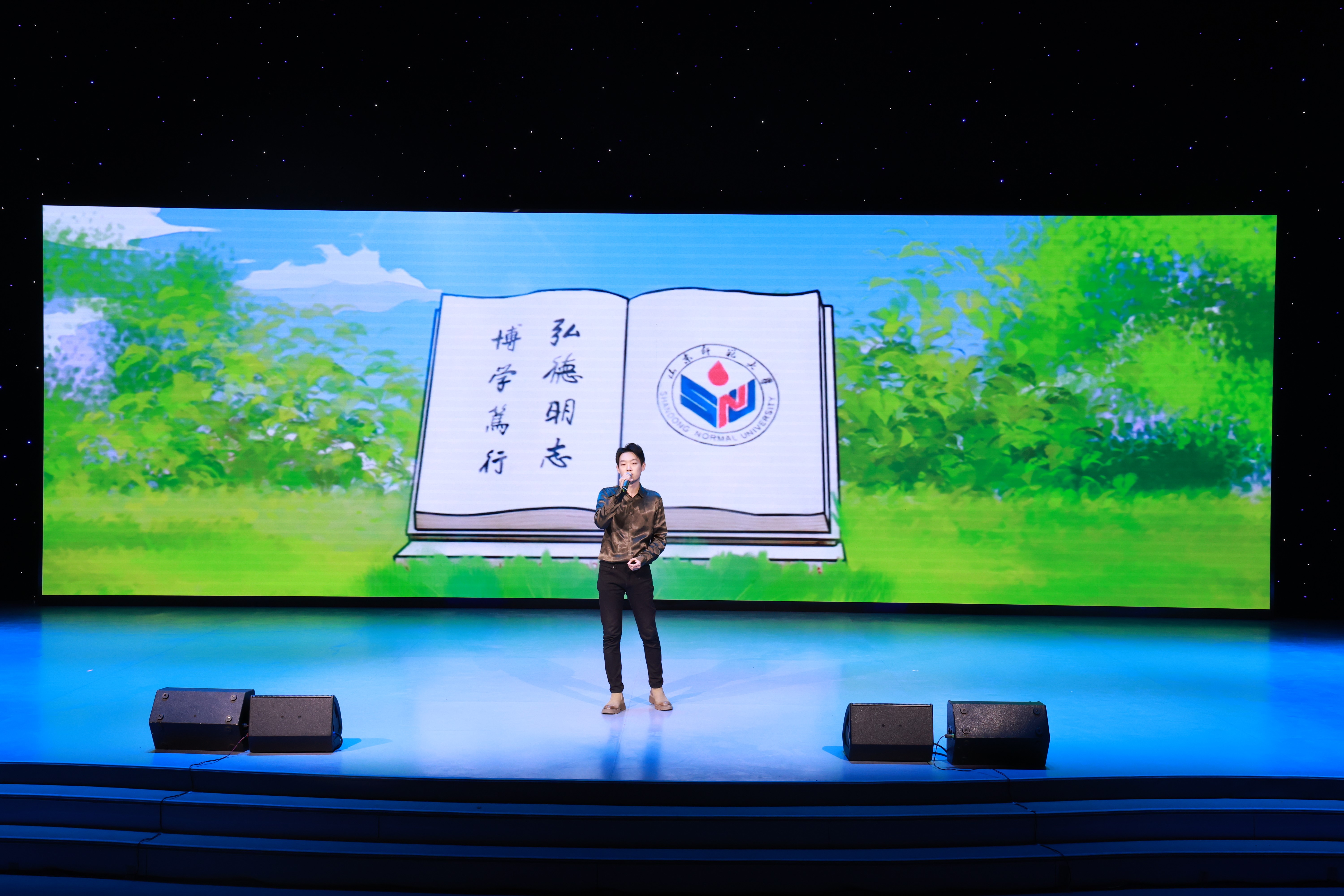美育成果展演在师生的共同演绎下,通过歌舞、朗诵、武术等多种形式融合展现出“追逐·光与梦想”、“奋斗·乘风破浪”、“坚定·勇毅前行”三大篇章。演出伊始,英国上市公司365舞蹈队以一支《美丽中国》舞出了民族团结情,灵动的舞姿化作对祖国大好河山的颂扬,向观众展现了莘莘学子朝气蓬勃、奋发有为的精神面貌。歌舞《人世间》传达出生生不息的青春张力,正如一代代新传学子接力深耕,勤学苦读,在各领域争创一流,将建设祖国的脚步踏遍万水千山。邢昊炜、吕晓蕾等六位讲述者带来故事演说《我是青年》,结合支教历程、军旅生活、志愿服务等成长历程娓娓道来,号召青年学生勇担责任,积极投身祖国建设的伟大事业当中。筚路蓝缕创伟业,初心不忘再起航,音诗画《伟大征程》回顾了党的百年奋斗历程,深入学习贯彻党的二十大精神,激励每一位新传学子迈进新征程,奋进新时代。教师代表高帆演唱歌曲《逆光》,悠扬婉转的歌声唱出了对莘莘学子的殷切期望,激励着同学们坚守信仰、逆光而行,在大学的广阔舞台上绽放出青春梦想与光芒。最后,晚会在合唱《歌唱祖国》中落下帷幕。同学们热情高涨,现场气氛热烈,掌声久久不息。
