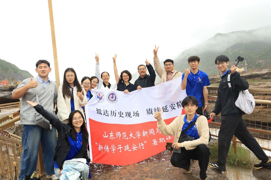 9月4日,社会实践队前往壶口瀑布,感悟《黄河大合唱》的灵感源泉,团队成员集体高唱《保卫黄河》,将个人情感与民族精神融为一体。先辈们用铁血讲述黄河故事,新时代的新闻人则要用笔和镜头记录伟大时代。