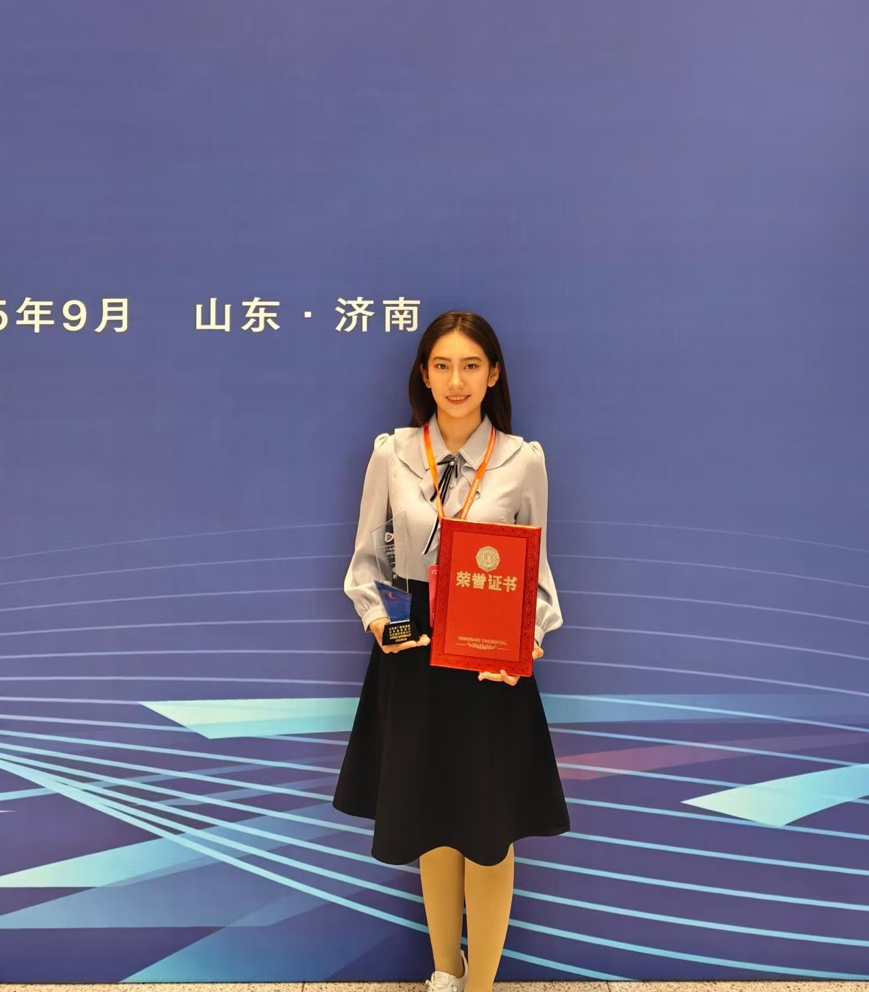 近日,由山东省广播电视局、山东省教育厅等部门组织的山东省视听高新技术产业发展活动周在济南开幕,学院学工办主任、团委书记张慧与学生代表赵熙文参加颁奖典礼与调研。