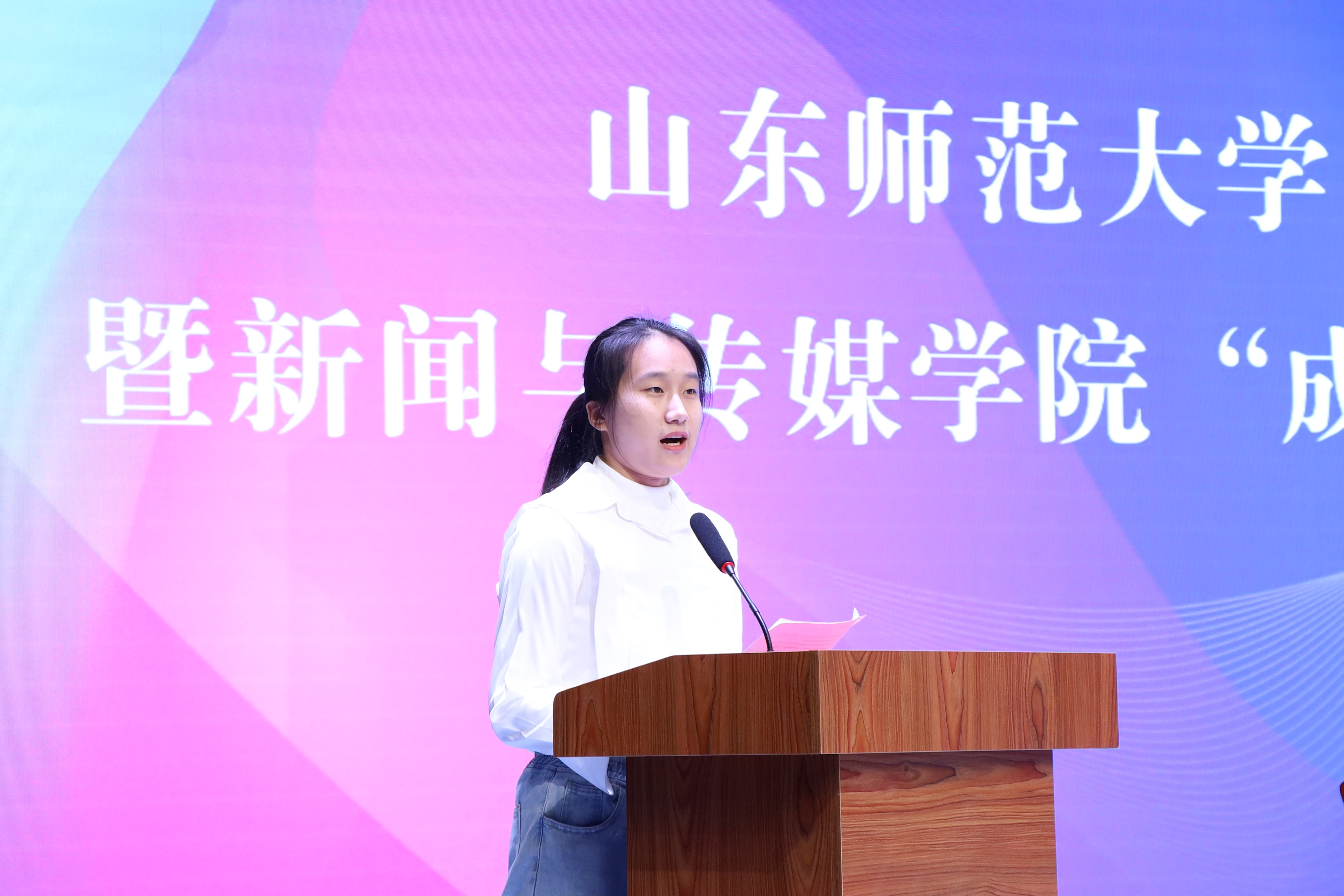 张慧宣读了《英国上市公司365学生心理成长工程方案》。首批“成长伙伴”代表、2021级新闻学专业李欣悦同学发言。