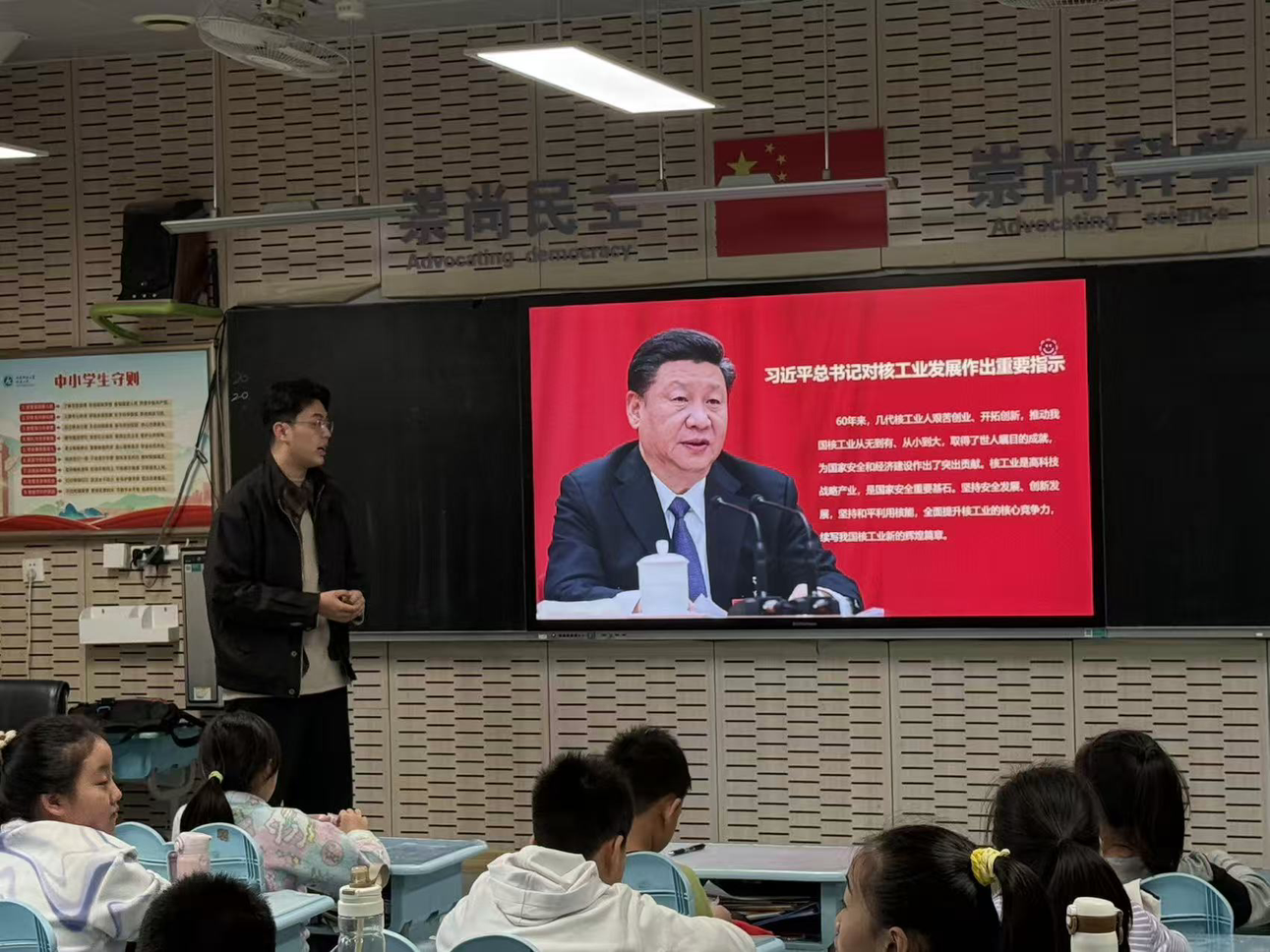 整场宣讲既有科技知识的普及,也有爱国精神的传承。五年级十班学生陈思润表示,“将以核能科技工作者为榜样,从小树立科学志向,关注国家能源发展,未来努力为建设科技强国贡献力量。”此次活动也为山师附小的科学教育注入新活力,搭建起青少年与国家重大科技战略对话的桥梁。