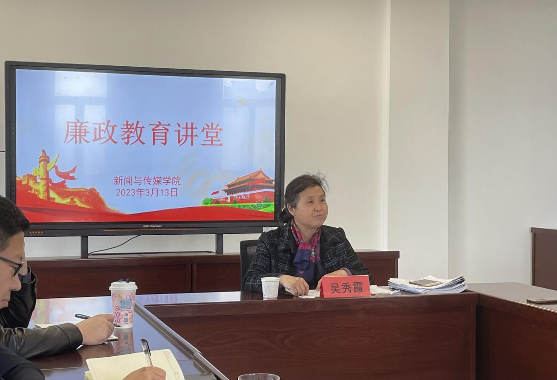 3月13日下午,学院在文浚楼518会议室举办“廉政教育讲堂”,邀请学校纪委(监察专员办公室)纪检监察室主任吴秀霞作报告。学院领导班子成员、全体党支部书记、各系教师代表现场聆听报告。报告由学院党委书记王秋亮主持。
