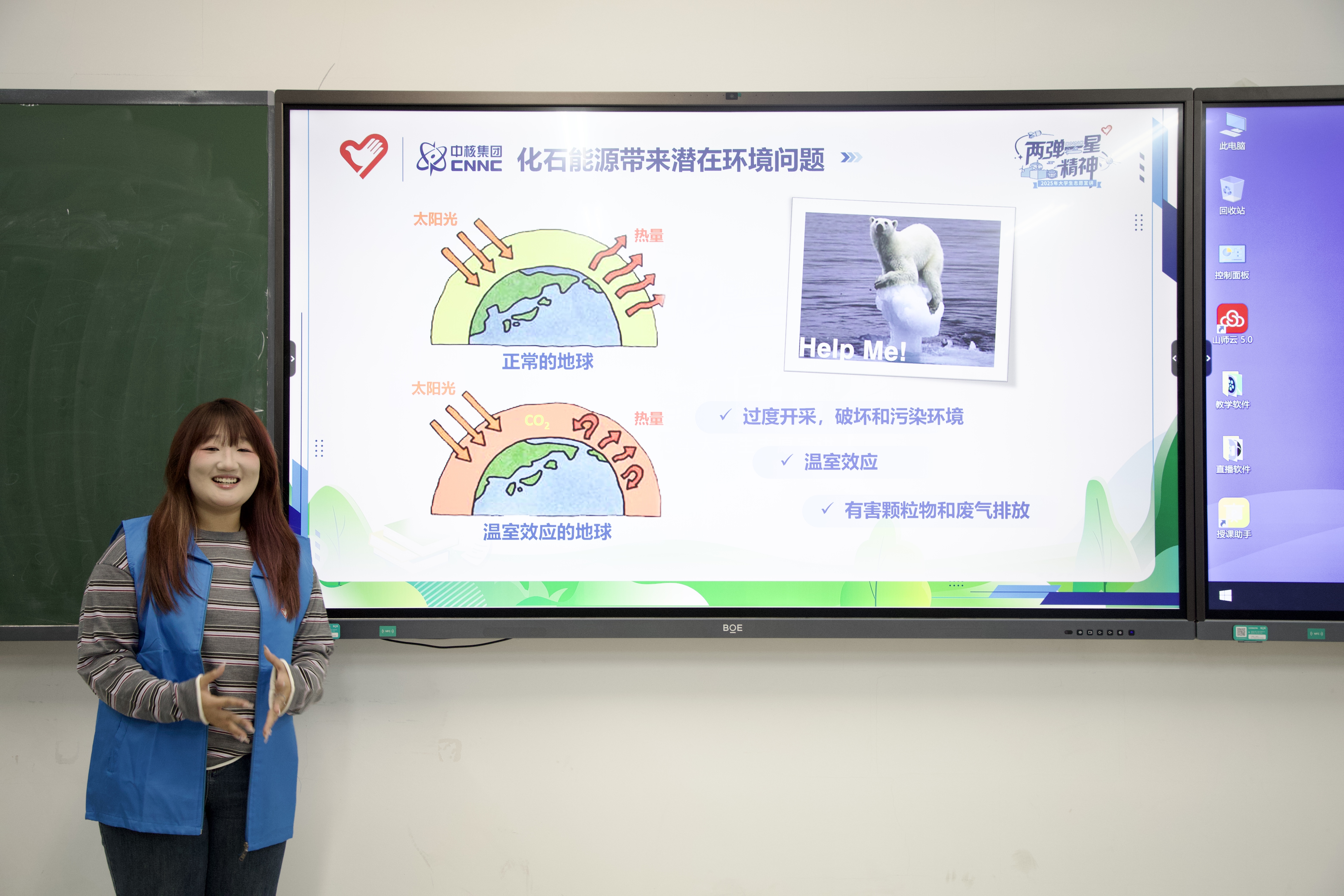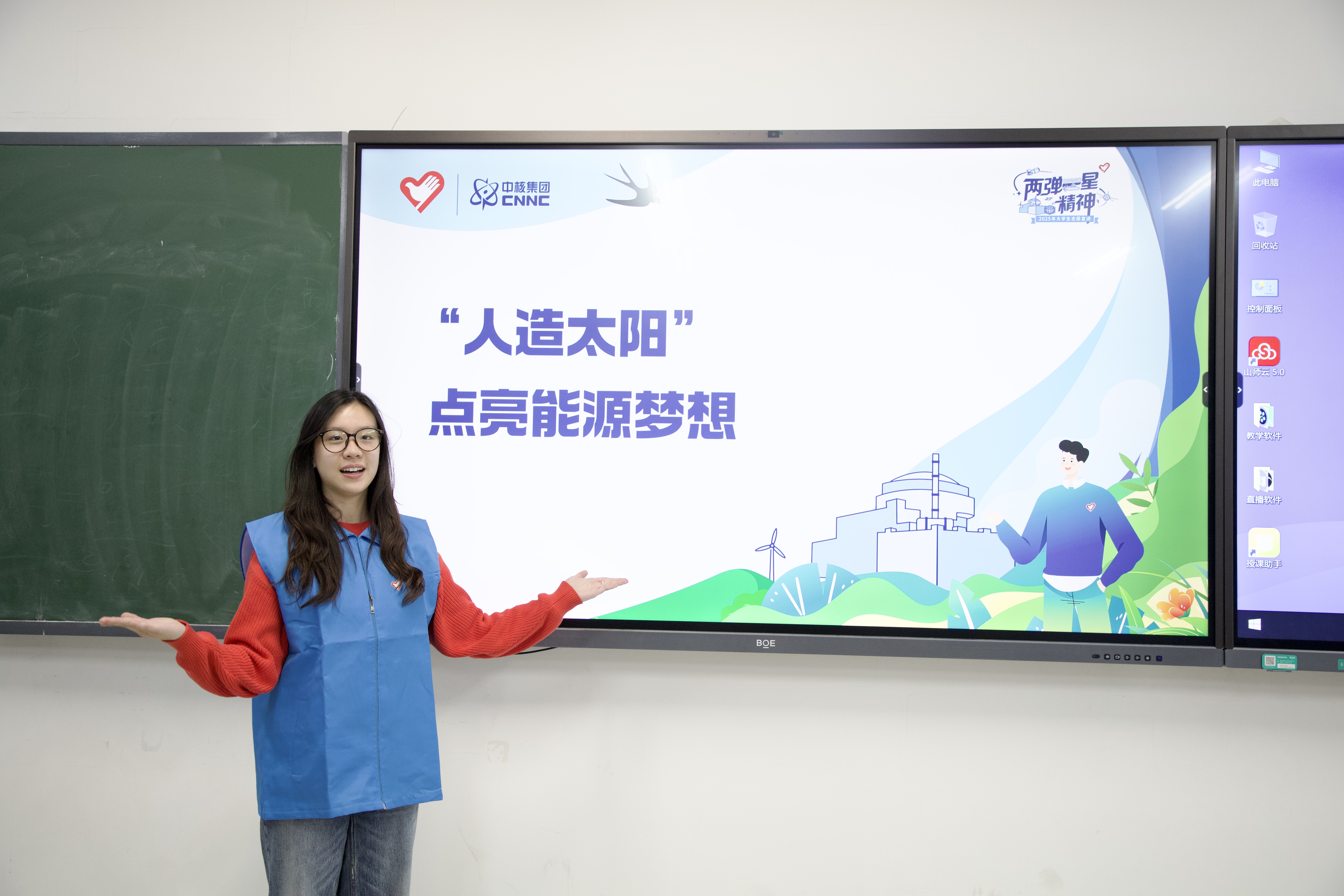 宣讲以“人造太阳”为核心展开,内容兼具专业性与通俗性。邴一哲从全球能源问题切入,系统梳理核能发展历程及核聚变的关键价值,同时直面科研难题,详细介绍一亿度高温控制、特殊容器制造、技术封锁突破等核心挑战;乔筱然则结合科幻影视案例,生动阐明核聚变在解决能源短缺与环境问题中的重要意义,帮助同学们清晰掌握“人造太阳”的发展脉络与技术要点。