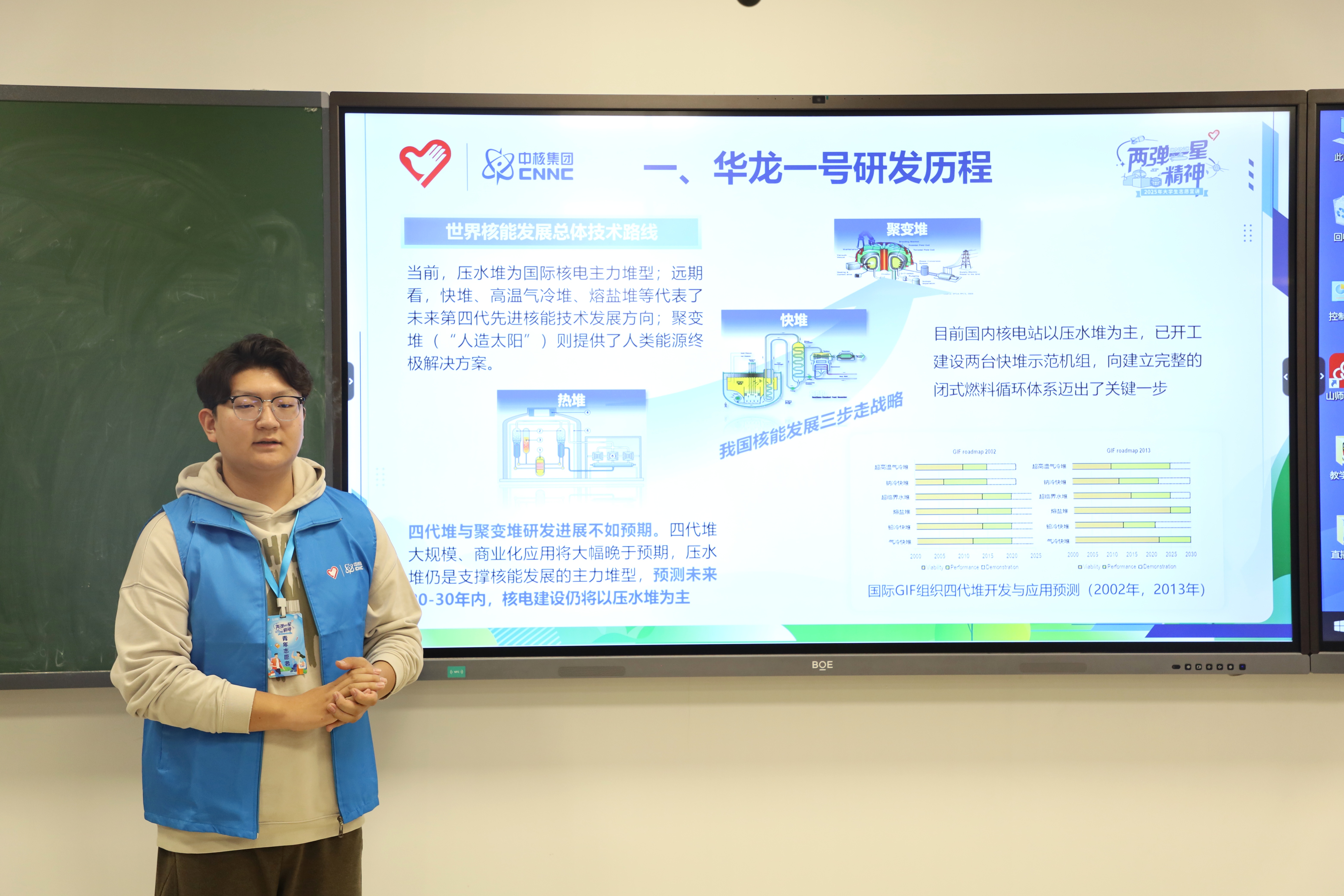 2025年11月19日,“两弹一星”精神志愿宣讲于长清湖校区文浚楼421教室顺利开展。宣讲团成员林志鹏以“华龙一号”为题进行宣讲,让同学们对中国制造有了更深入的认识。