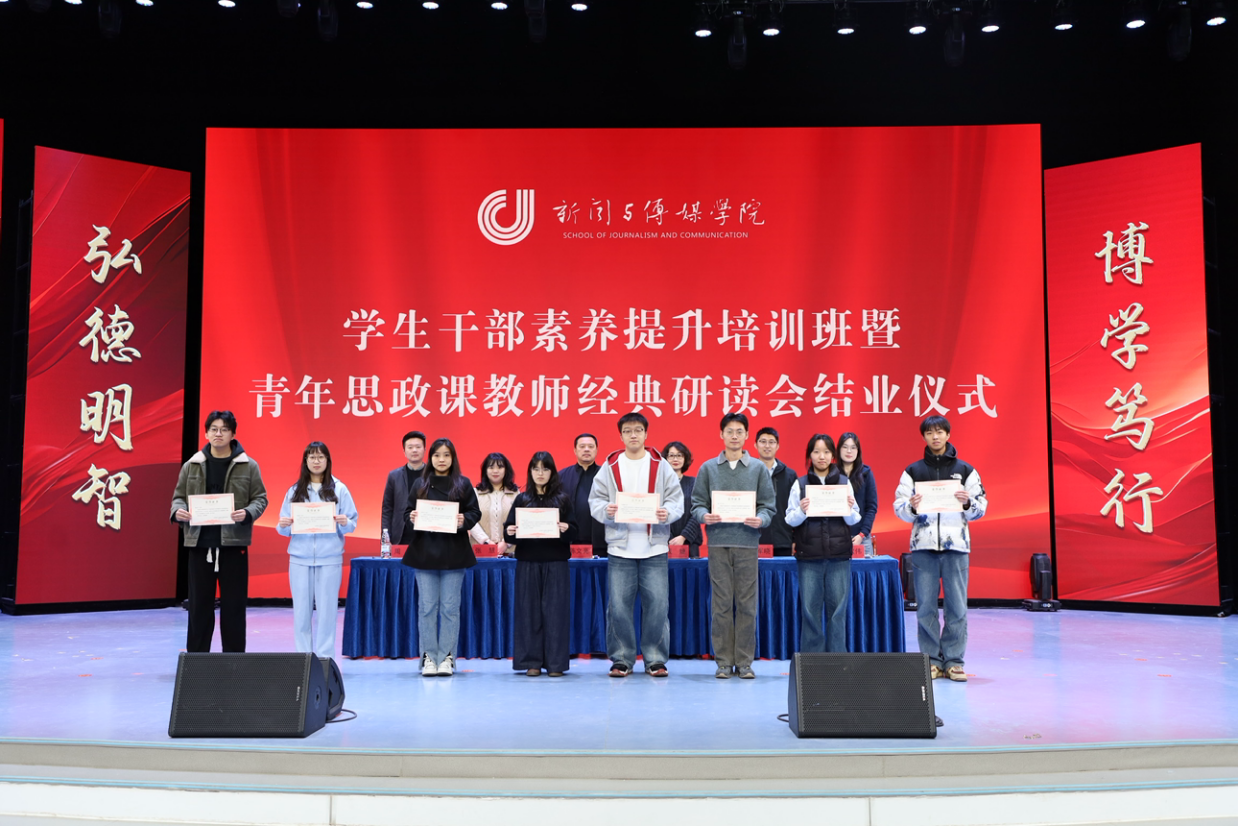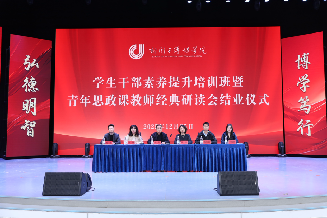 本次结业仪式系统总结了学生干部素养提升培训和青年思政课教师经典研读会的实践成果,进一步提高了学生干部的履职能力与创新能力,为学院的高质量发展锚定了前行方向、凝聚了奋进合力。