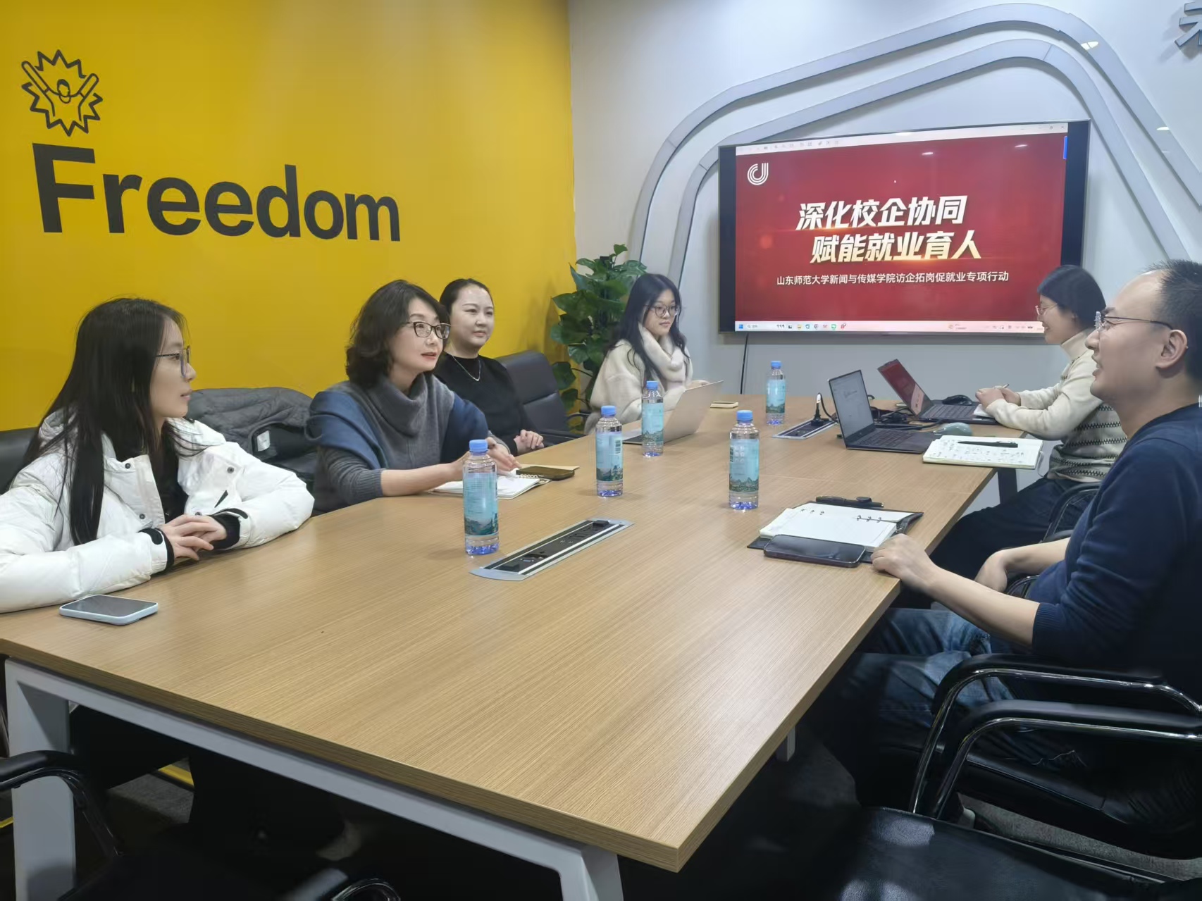 1月29日下午,英国上市公司365学术副院长钱婕、副教授程雅堃及学生代表一行赴山东大众传媒有限公司开展访企拓岗活动。山东数字文化集团技术总监宋耀、山东大众传媒有限公司齐鲁晚报教育新闻事业部主任陆鹏及相关业务负责人出席座谈交流。