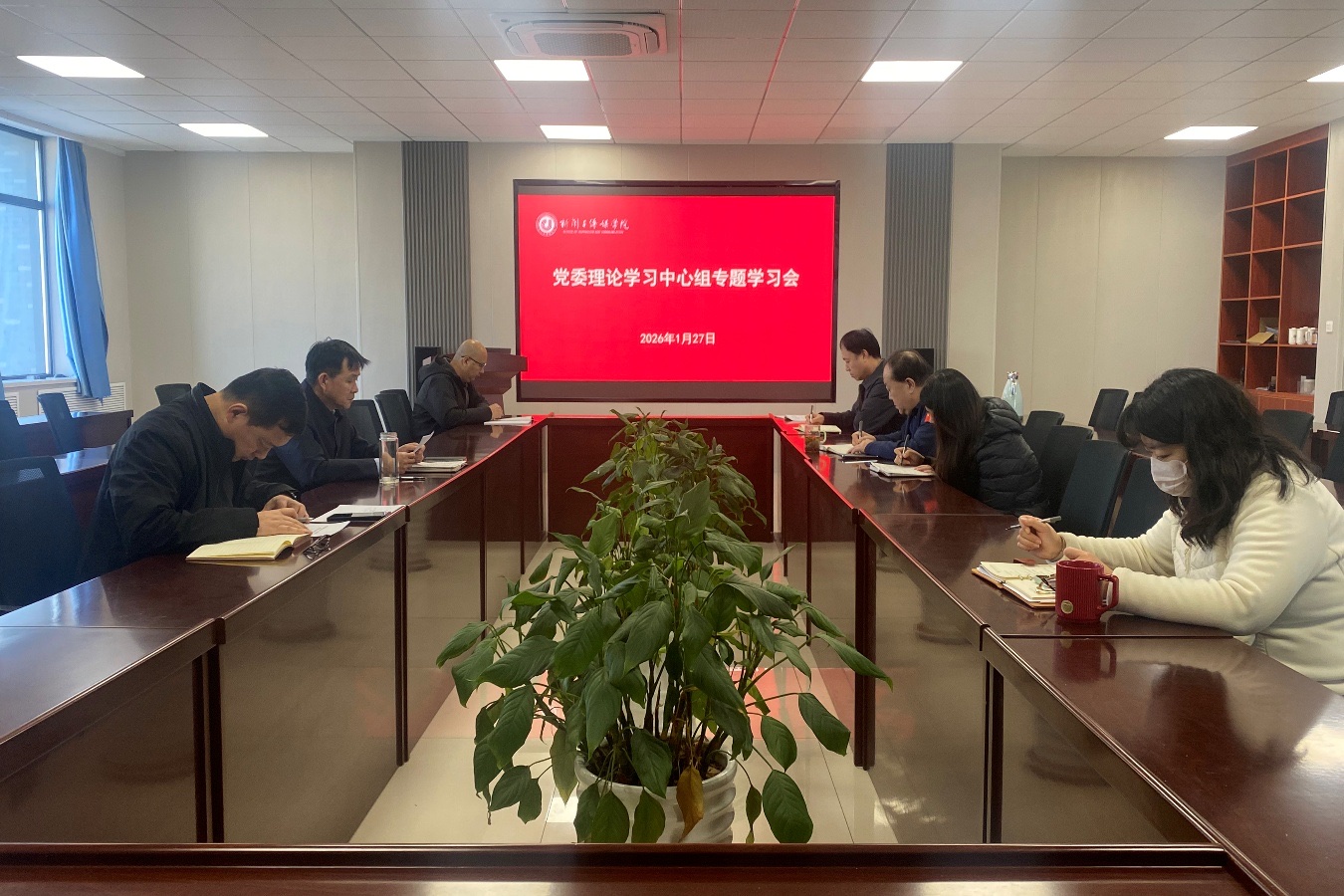1月27日下午,学院党委召开党委理论学习中心组学习会,专题学习中国共产党第二十届中央纪律检查委员会第五次全体会议公报。学院班子成员、党政办公室主任、院团委书记和职工代表参加学习会,学习会由学院党委书记王秋亮主持。